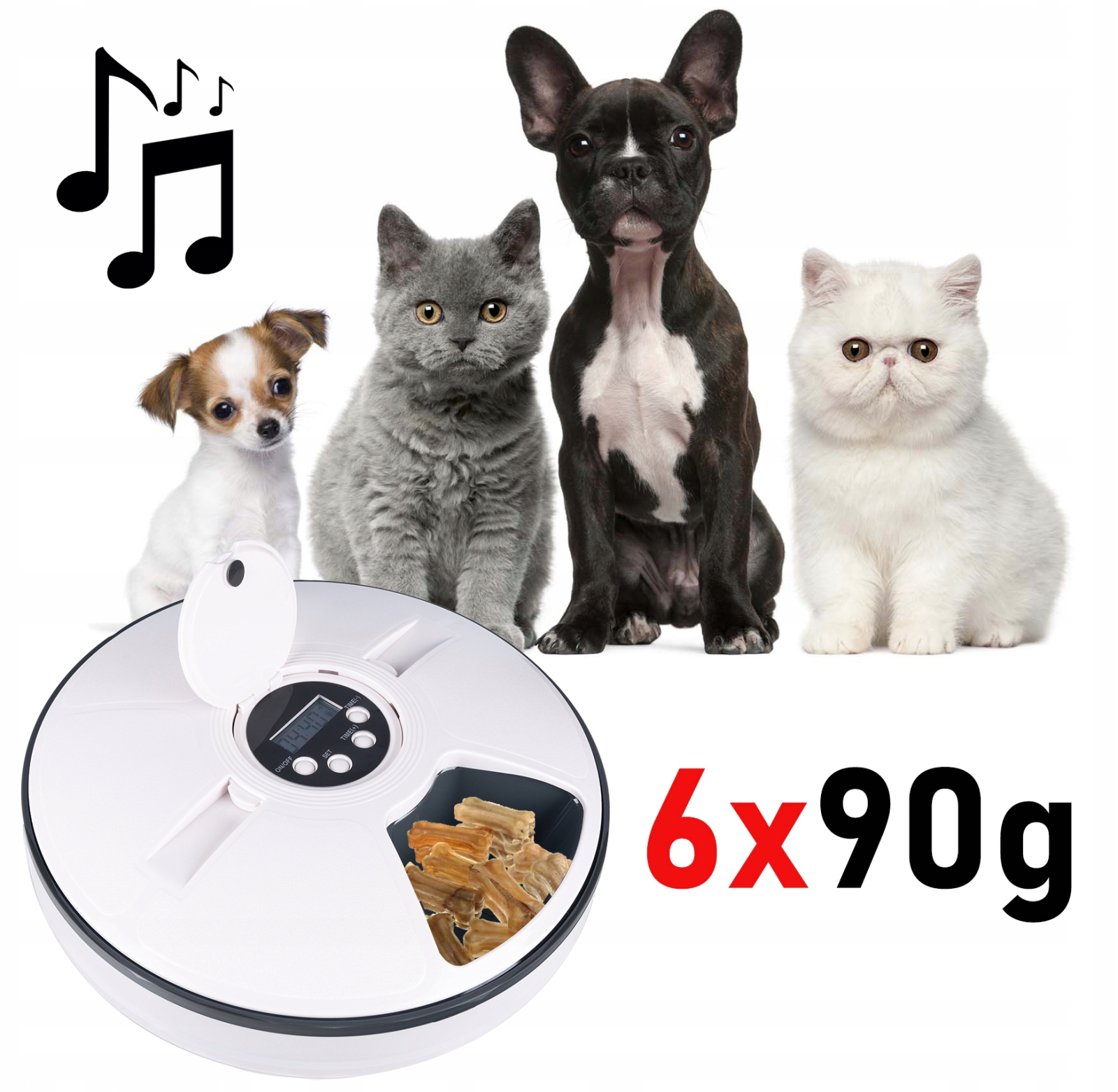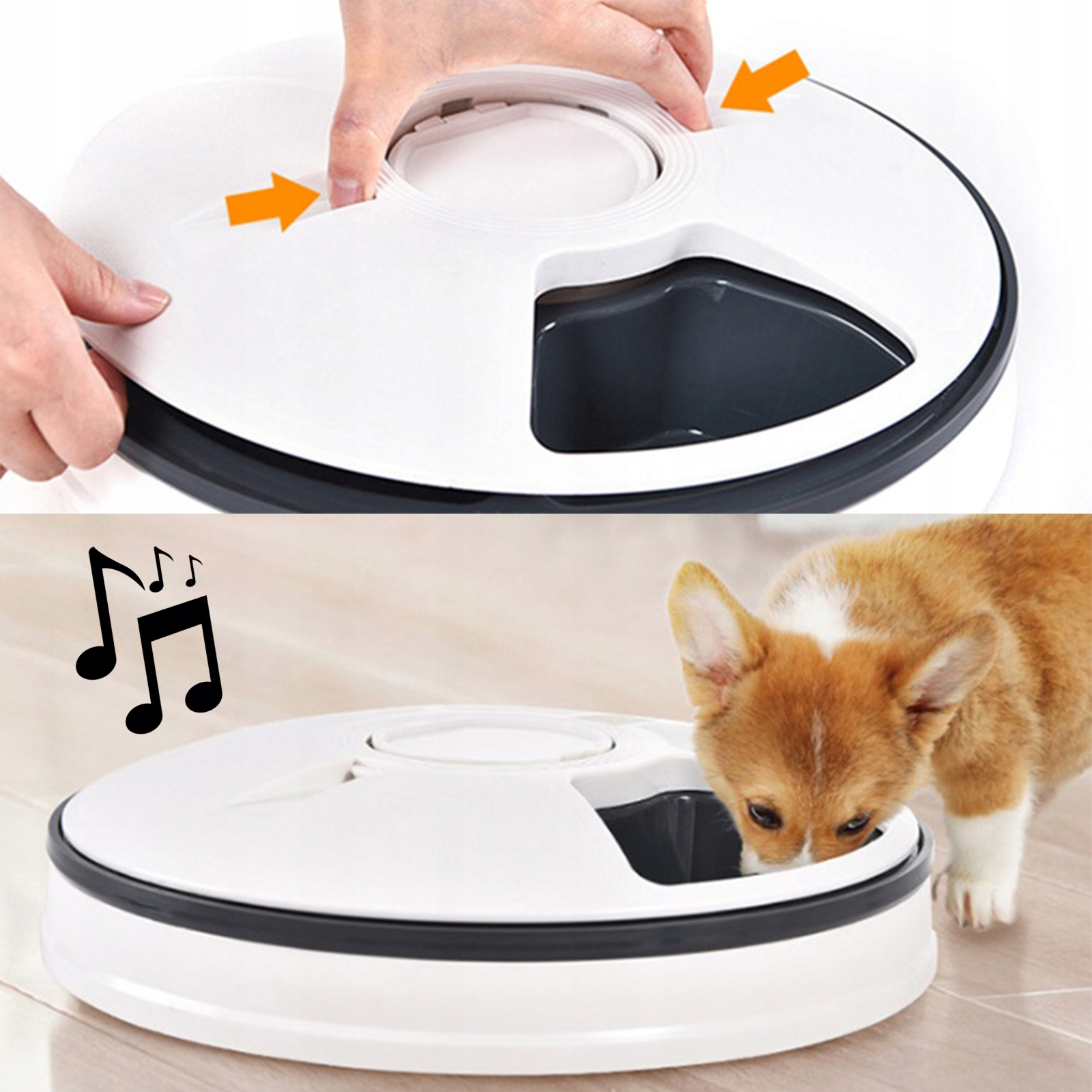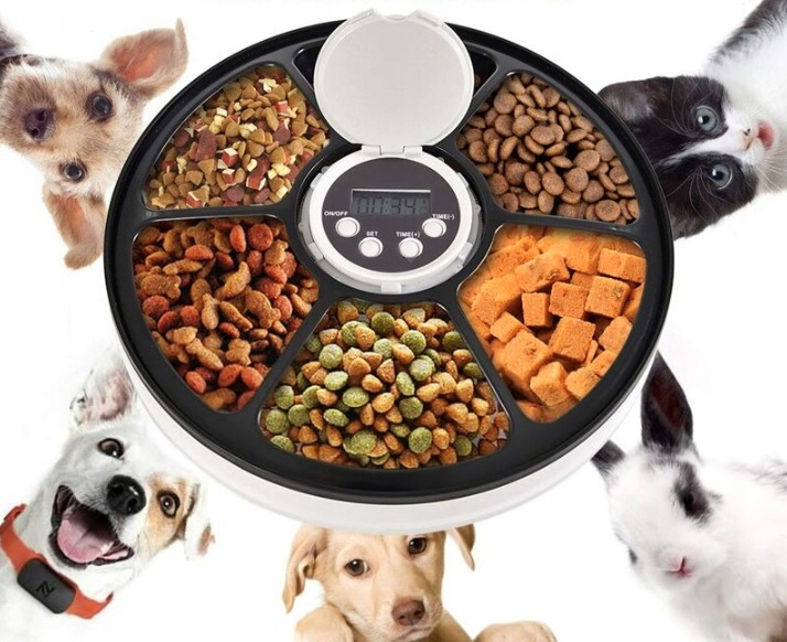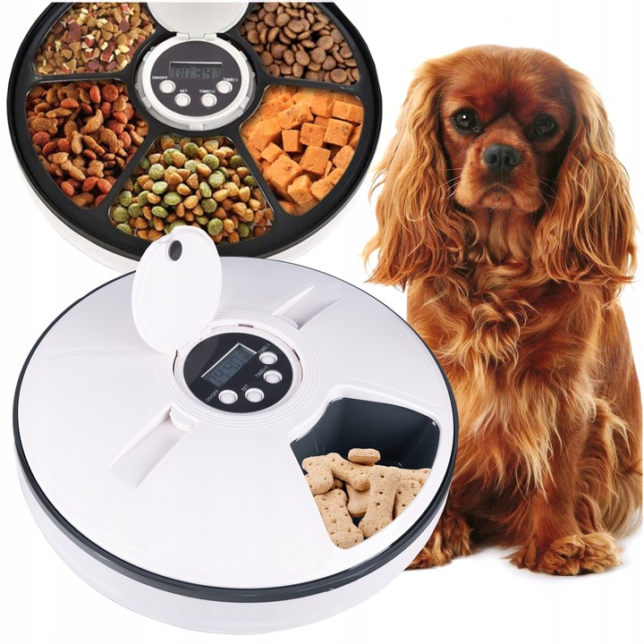 Hranitor automat pentru caini si pisici, sunet hranire, capacitate dispenser 6x70gr, cu display digital