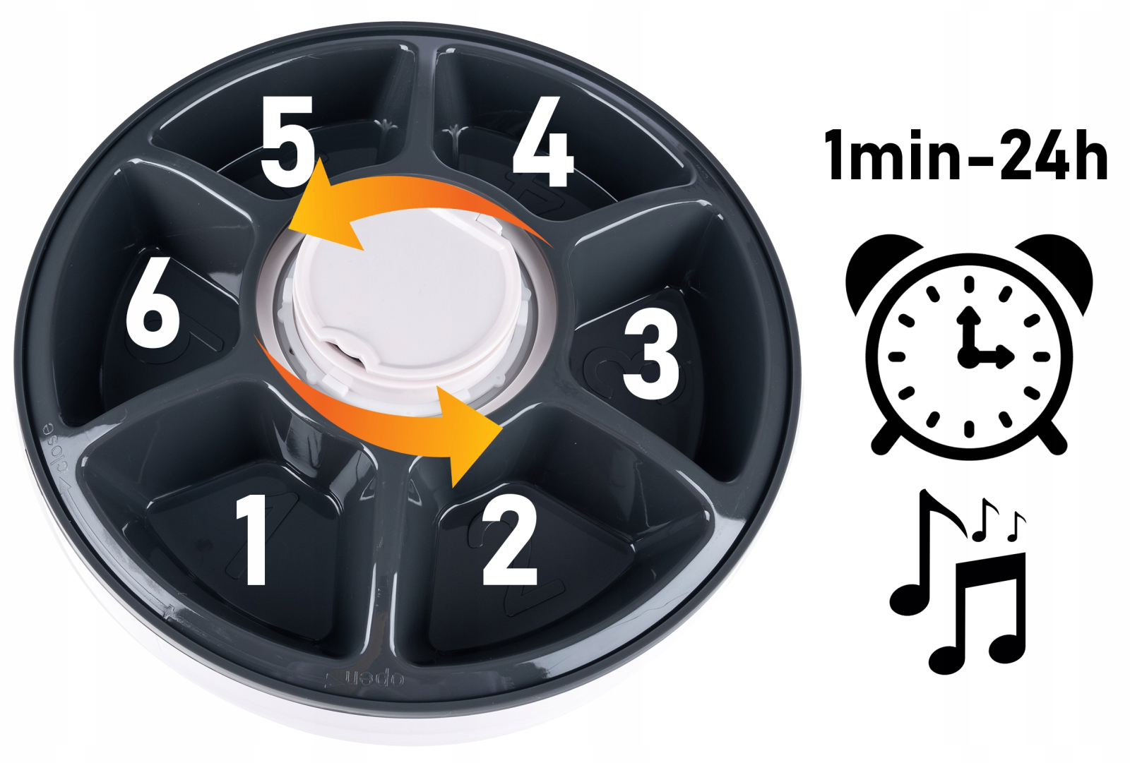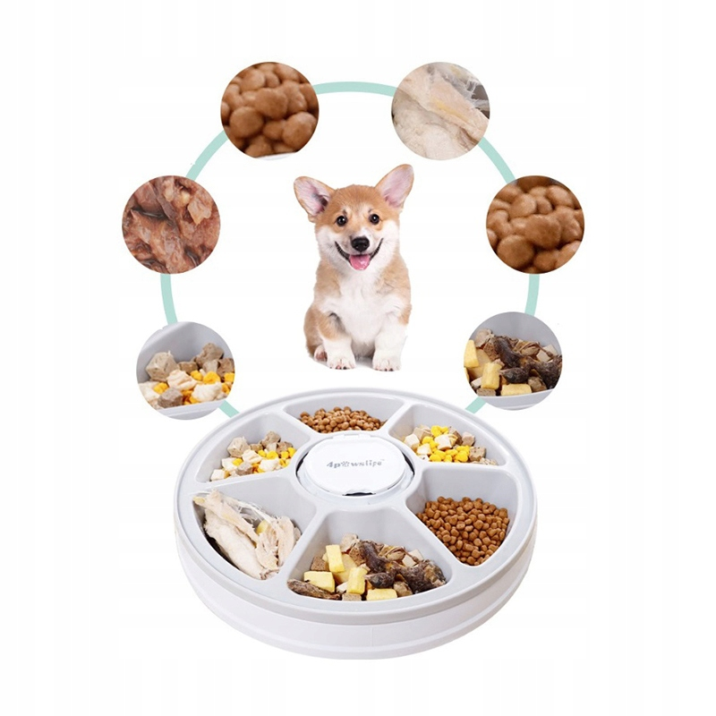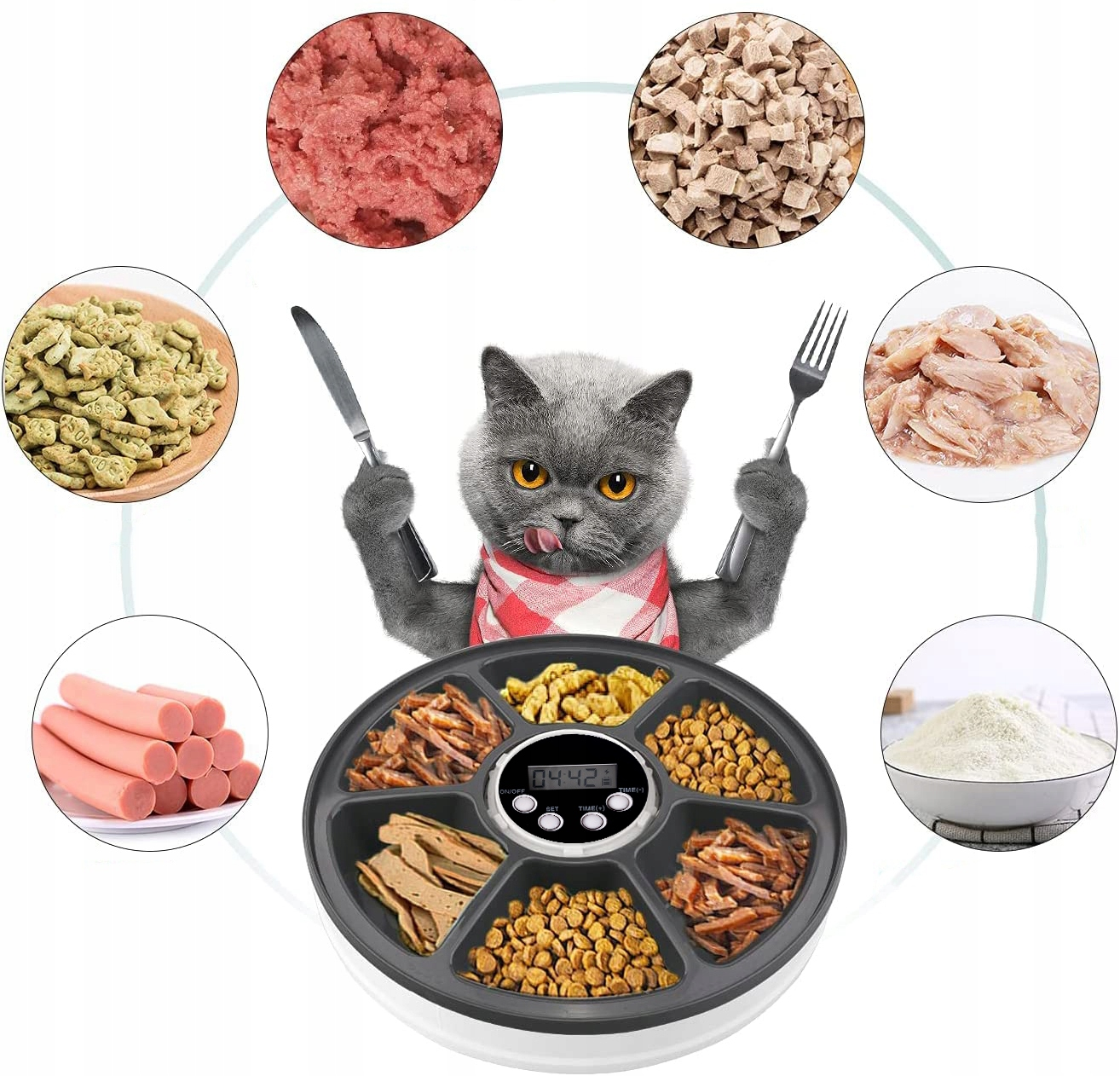 Hranitor automat pentru caini si pisici, sunet hranire, capacitate dispenser 6x70gr, cu display digital