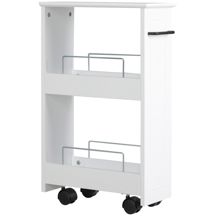 Caruciorul multifunctional [BRAND NAME] are un design compact care il face ideal pentru diferite incaperi din casa, precum bucatarie, baie sau living. Dotat cu 3 rafturi, iti ofera spatiu suficient pentru a-ti depozita articolele. Rotile pivotante si manerul lateral iti permit sa il muti fara efort acolo unde ai nevoie. Robust si care economiseste spatiu, te ajuta sa profiti de fiecare colt al casei tale.