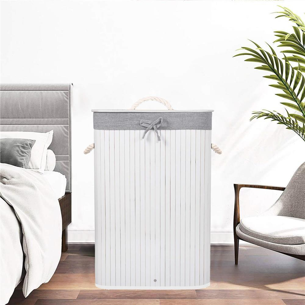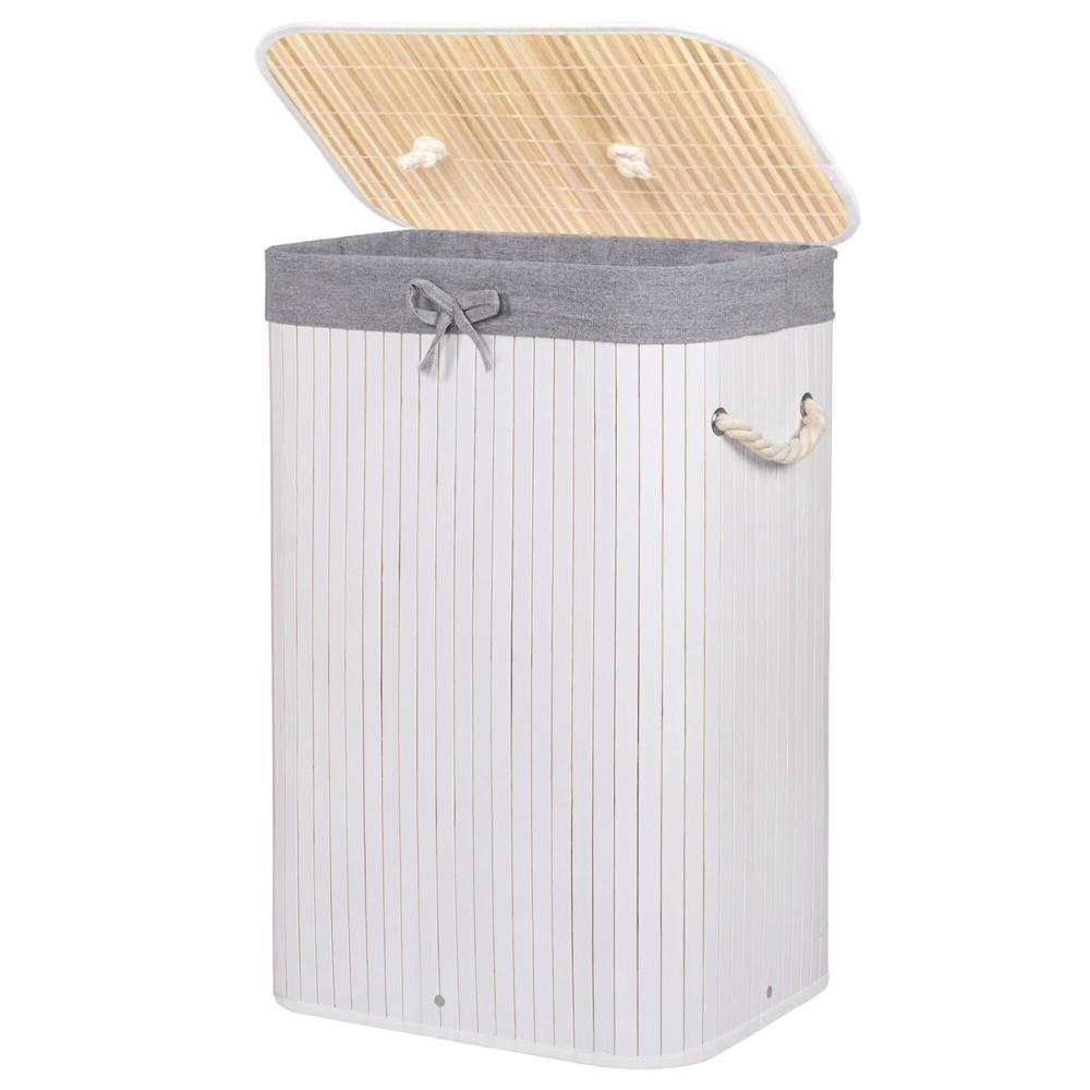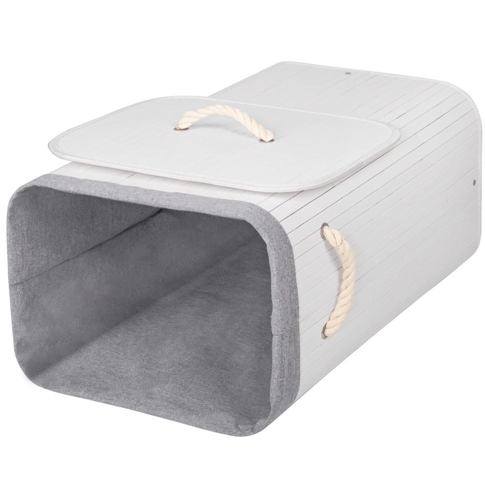 Cosul de rufe cu structura din bambus este o solutie practica si eleganta pentru depozitarea rufelor murdare in baie sau spalatorie. Sacul textil interior este detasabil si usor de curatat, iar capacul prevazut cu maner din sfoara pastreaza continutul ascuns si organizat. Designul compact si capacitatea de 72 litri il fac potrivit pentru utilizarea zilnica in orice baie.