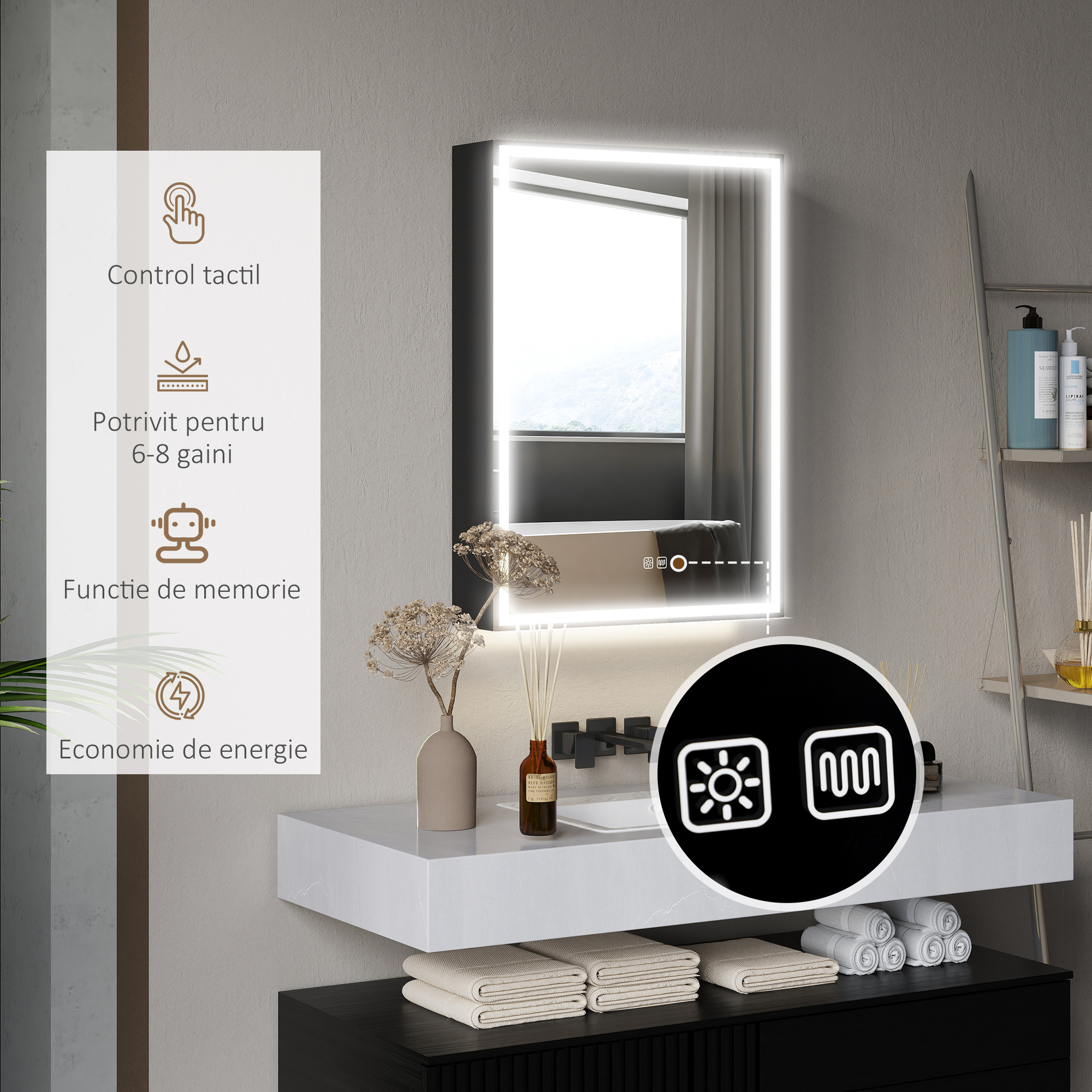 Un accesoriu esential pentru orice baie: oglinda cu dulap [BRAND NAME] lumineaza spatiul tau cu lumina LED exterioara si inferioara, cu tonuri variate intre 3000K alb cald, 4500K natural si 6500K alb rece. Aceasta oglinda de baie include un dispozitiv anti-ceata pentru o vedere clara dupa dus. Ofera trei rafturi interne pentru o capacitate generoasa de depozitare si usi cu inchidere silentioasa pentru un plus de siguranta si confort.