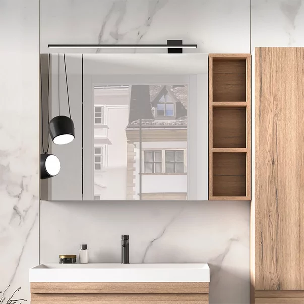 Dulap cu oglinda suspendat KolpaSan Naomi finisaj lemn 2 usi 80 cm Detalii Dulap cu oglinda suspendat KolpaSan Naomi finisaj lemn 2 usi 80 cm Unul dintre considerentele importante in proiectarea gamei Naomi a fost versatilitatea baii, motiv pentru care rafinamentul estetic este completat de zonele de depozitare. Mobilierul Naomi este disponibil in culorile alb, lemn artizanal (Craft Wood) si beton inchis (Dark Concrete). Abordarea modulara a amenajarii iti permite sa asamblezi o varietate de aranjamente de baie pentru a crea unul care sa raspunda tuturor nevoilor si dorintelor tale.