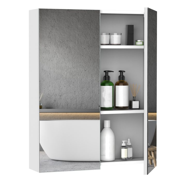 Acest dulap suspendat [BRAND NAME] este perfect pentru baia ta! Realizat din panouri MDF de cea mai buna calitate, este dotat cu doua usi cu oglinda si reprezinta solutia ideala daca ai probleme de spatiu. in interiorul dulapului se gasesc doua rafturi practice: poti regla inaltimea celui de sus si poti depozita confortabil toate produsele tale de baie. Schimbarea aspectului baii tale este usoara cu [BRAND NAME]!