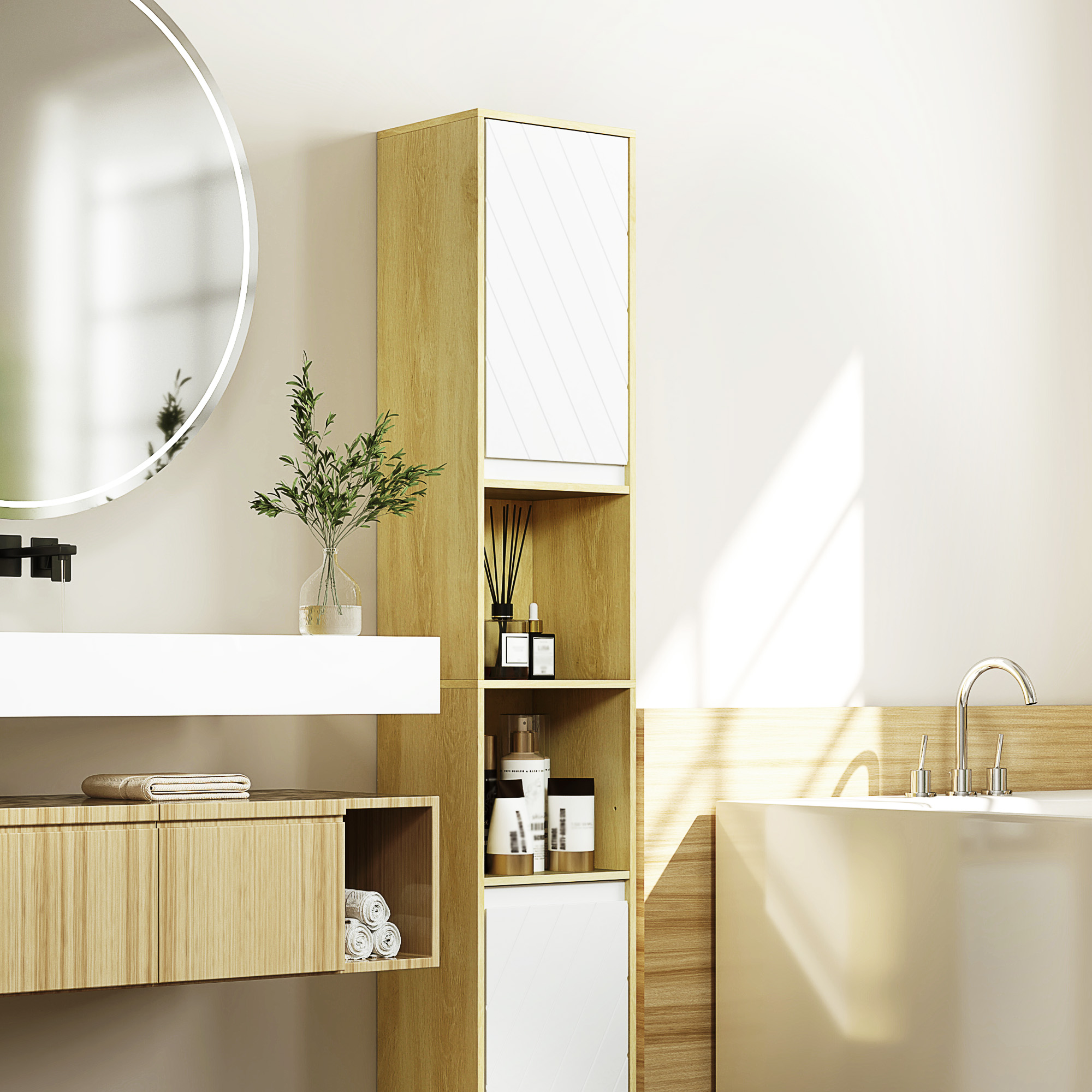 Maximizeaza spatiul cu acest mobilier de baie [BRAND NAME]. Proiectat pentru a profita la maximum de fiecare colt, coloana de baie are o structura ingusta care se dezvolta vertical si este dotata cu rafturi. Datorita stilului sau minimal si discret, poti combina usor acest dulap de baie cu mobila ta. Adu-l acasa chiar acum!