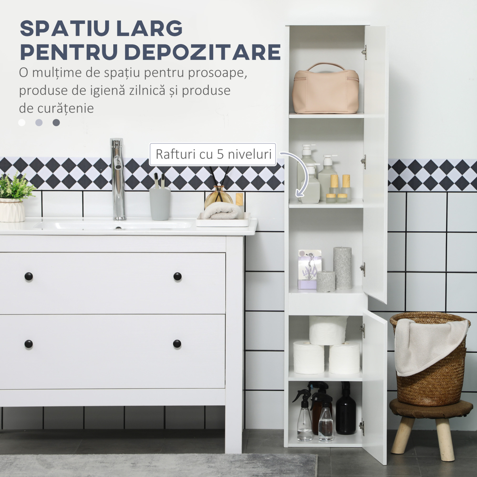 Maximizati spatiul si minimizati dezordinea cu acest dulap de baie subtire de la [BRAND NAME]. Organizatorul de depozitare pentru baie super elegant sporeste senzatia de eleganta si stil. Designul incorporat de tragere cu degetul este curat si convenabil pentru a inlocui butoanele si manerele. Dispune de rafturi pe 5 niveluri, aceasta camara de depozitare pentru baie este excelenta pentru utilizarea in gospodariile comune si este finisata cu un dispozitiv anti-rasturnare pe spate pentru a preveni caderea. O piesa grozava pentru baia dvs.