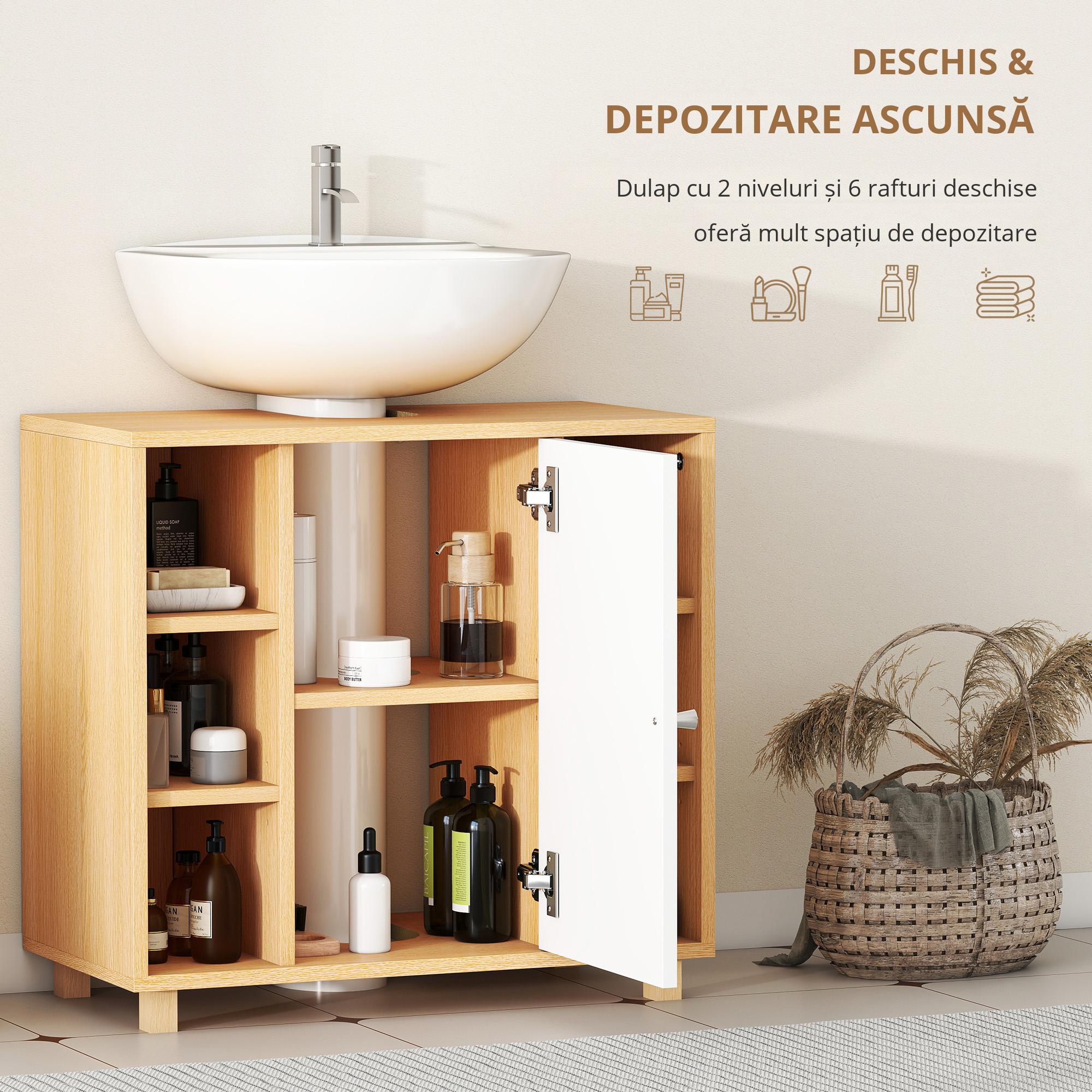 Satul de dezordinea din baie si de spatiul pierdut in jurul chiuvetei pe piedestal? Haosul acesta poate transforma rutina ta de dimineata intr-o corvoada. Dulapul [BRAND NAME] situat sub chiuveta optimizeaza acest spatiu dificil, furnizand spatiu de stocare ocult si rafturi accesibile pentru obiectele de zi cu zi. incepe-ti ziua in mod organizat si calm cu acest dulap sub chiuveta, care aduce armonie si organizare in sanctuarul tau personal.