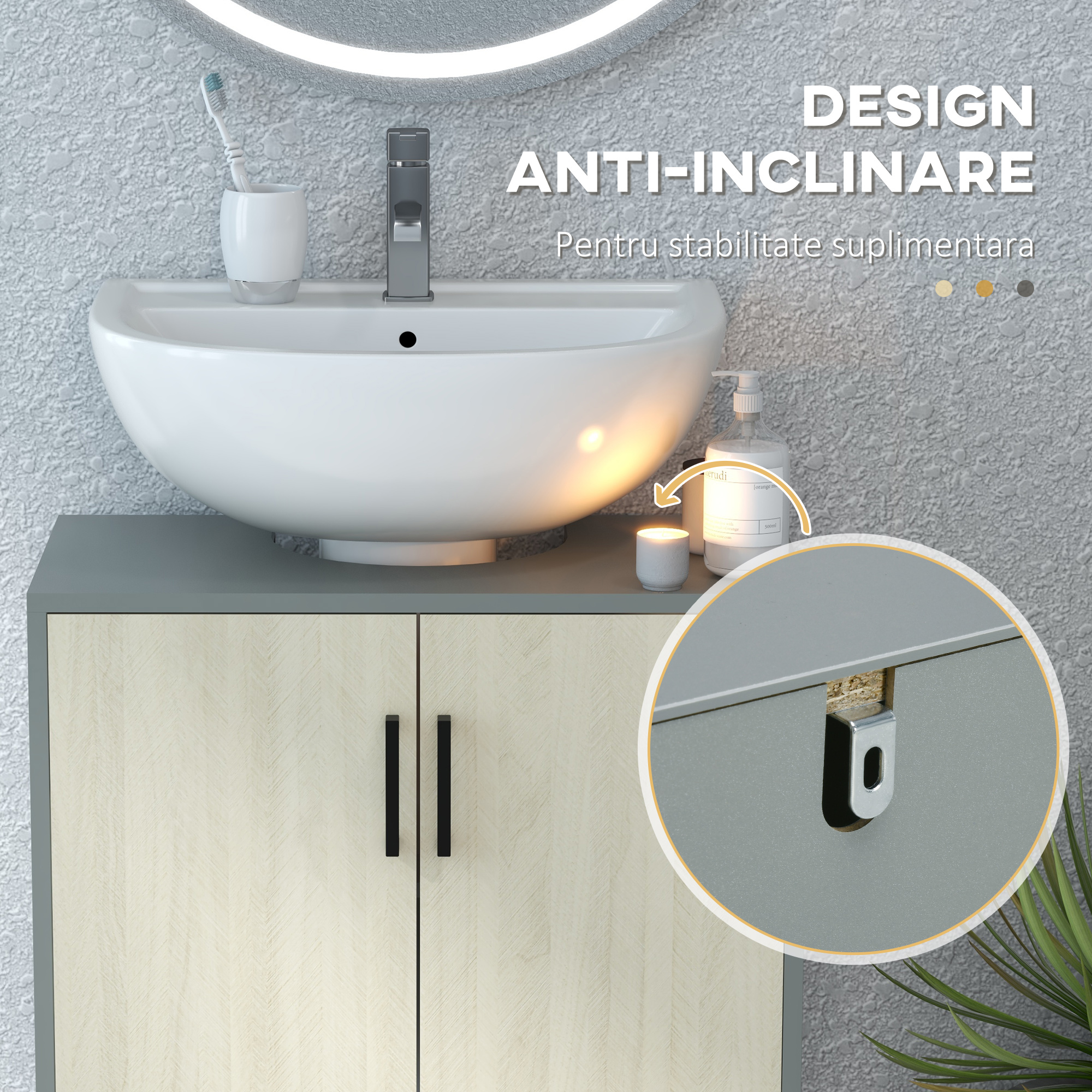 Aveti nevoie de mai mult spatiu de depozitare in baia dumneavoastra Bineinteles ca da. Acest dulap de baie sub chiuveta de la [BRAND NAME] va ofera acel plus de spatiu fara sa va faceti griji cu privire la gasirea unui loc pentru el. Acest organizator se potriveste direct sub chiuveta dumneavoastra care altfel ramane goala. Folositi acest spatiu suplimentar pentru a depozita produsele de igiena zilnica, produsele pentru curatenie sau prosoapele. Nu ramaneti blocat sa puneti totul in dulapul de pe hol; pastrati ceea ce aveti nevoie aproape, atunci cand aveti nevoie, cu acest dulap de chiuveta cu piedestal [BRAND NAME].