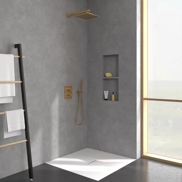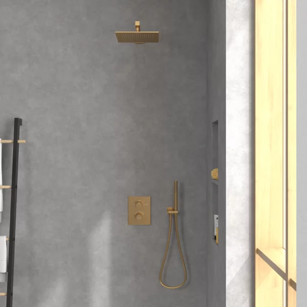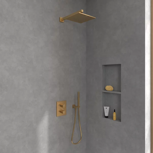 Adu senzatia unui dus relaxant de tip spa direct in baia ta cu palaria de dus Villeroy & Boch Universal. Designul sau patrat, finisat in auriu periat, iti ofera un aspect modern si elegant, potrivit atat pentru montaj pe perete, cat si pe tavan. Forma minimalista si liniile curate se potrivesc usor in orice stil de amenajare, oferindu-ti un element rafinat si discret.