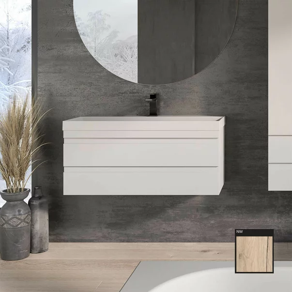 Set dulap baza suspendat KolpaSan Naomi finisaj lemn cu lavoar 100 cm Detalii Set dulap baza suspendat KolpaSan Naomi finisaj lemn cu lavoar 100 cm Unul dintre considerentele importante in proiectarea gamei Naomi a fost versatilitatea baii, motiv pentru care rafinamentul estetic este completat de zonele de depozitare. Mobilierul Naomi este disponibil in culorile alb, lemn artizanal (Craft Wood) si beton inchis (Dark Concrete). Abordarea modulara a amenajarii iti permite sa asamblezi o varietate de aranjamente de baie pentru a crea unul care sa raspunda tuturor nevoilor si dorintelor tale.