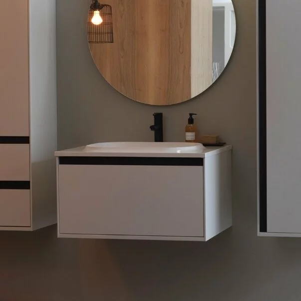 Set dulap suspendat si lavoar compozit KolpaSan Pandora mdf alb 75 cm Detalii Set dulap suspendat si lavoar compozit KolpaSan Pandora mdf alb 75 cm Gama de mobilier KolpaSan Pandora are atat un design modern, atragator, cat si o serie de functionalitati deosebite care propun mobilierul pentru bai amenajate intr-un stil contemporan. Cu o atentie deosebita pentru alegerea unor materiale premium si pentru o functionalitate ridicata, seria Pandora se remarca prin impartirea inspirata a spatiului din interiorul sertarelor si a usilor pentru maximizarea spatiului disponibil. Sub lavoarul din compozit cu o forma impresionanta sta un dulap baza cu usi Softclose . creeaza o armonie de linii uniforme, delicate, imbinate intr-un stil contemporan. Mobilierul KolpaSan Pandora este cu finisaj lucios, disponibil in culorile: alb, negru-marmura si lemn natur.