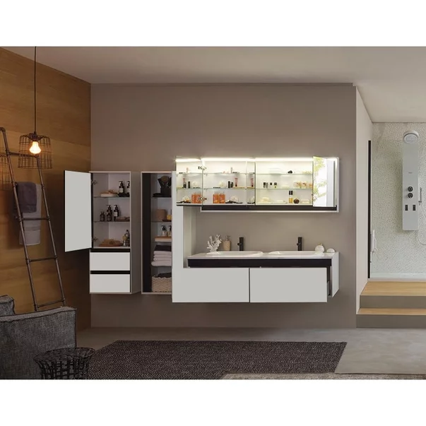 Set dulap suspendat si lavoar KolpaSan Pandora mdf alb 150 cm Detalii Set dulap suspendat si lavoar KolpaSan Pandora mdf alb 150 cm Gama de mobilier KolpaSan Pandora are atat un design modern, atragator, cat si o serie de functionalitati deosebite care propun mobilierul pentru bai amenajate intr-un stil contemporan. Cu o atentie deosebita pentru alegerea unor materiale premium si pentru o functionalitate ridicata, seria Pandora se remarca prin impartirea inspirata a spatiului din interiorul sertarelor si a usilor pentru maximizarea spatiului disponibil. Sub lavoarul din compozit cu o forma impresionanta sta un dulap baza cu usi Softclose . creeaza o armonie de linii uniforme, delicate, imbinate intr-un stil contemporan. Mobilierul KolpaSan Pandora este cu finisaj lucios, disponibil in culorile: alb, negru-marmura si lemn natur.