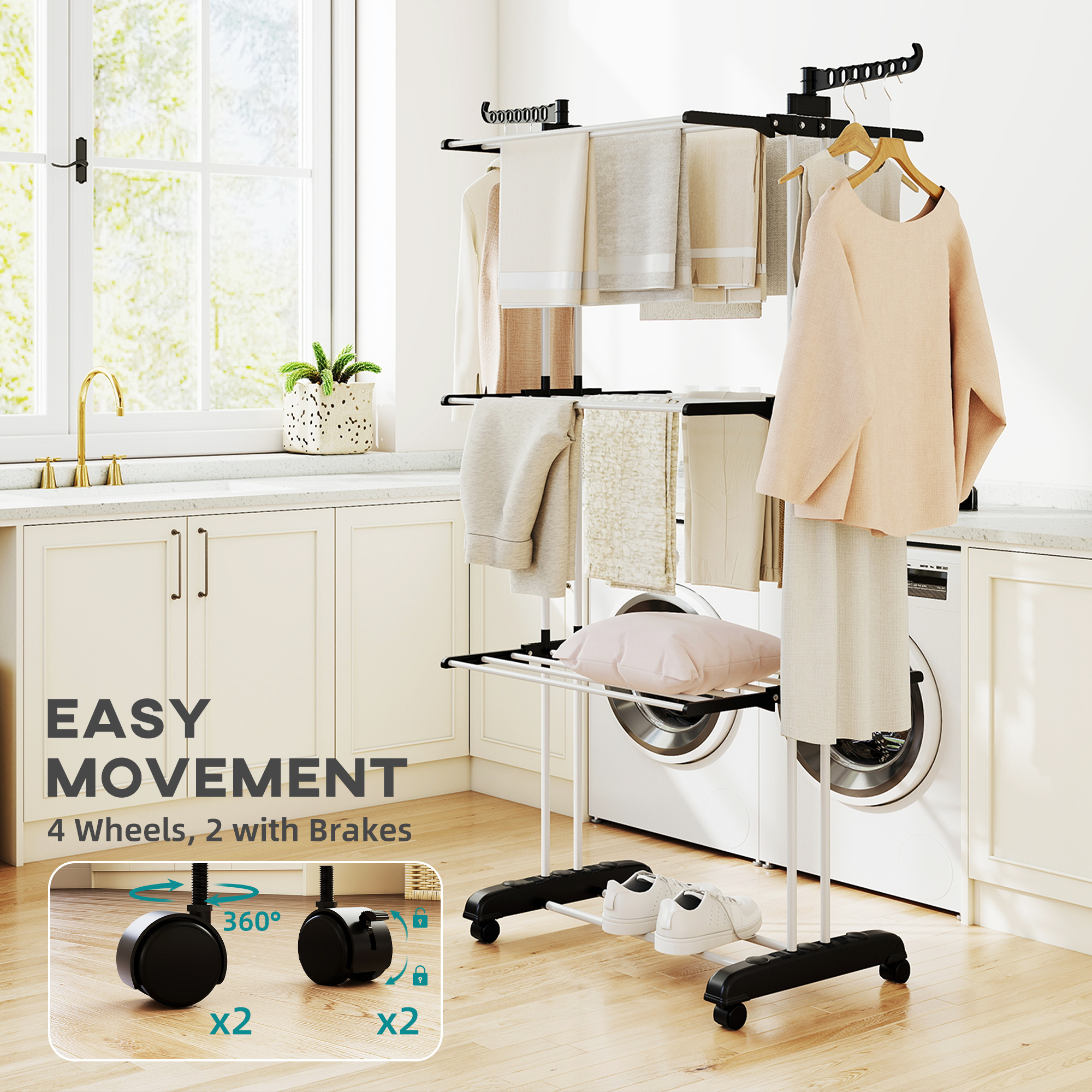 Cautati un suport de uscare confortabil independent pentru casa dvs.? Suportul de uscare [BRAND NAME] care economiseste spatiu este un produs conceput pentru a va ajuta cu treburile din jurul casei. Acest suport extensibil de uscare ofera uscare usoara si eficienta a aerului. Designul pe 4 niveluri cu 14 carlige suplimentare pentru uscarea in aer liber va permite sa agatati orice. Cand nu este utilizat, pur si simplu pliati-l si depozitati-l intr-un colt!