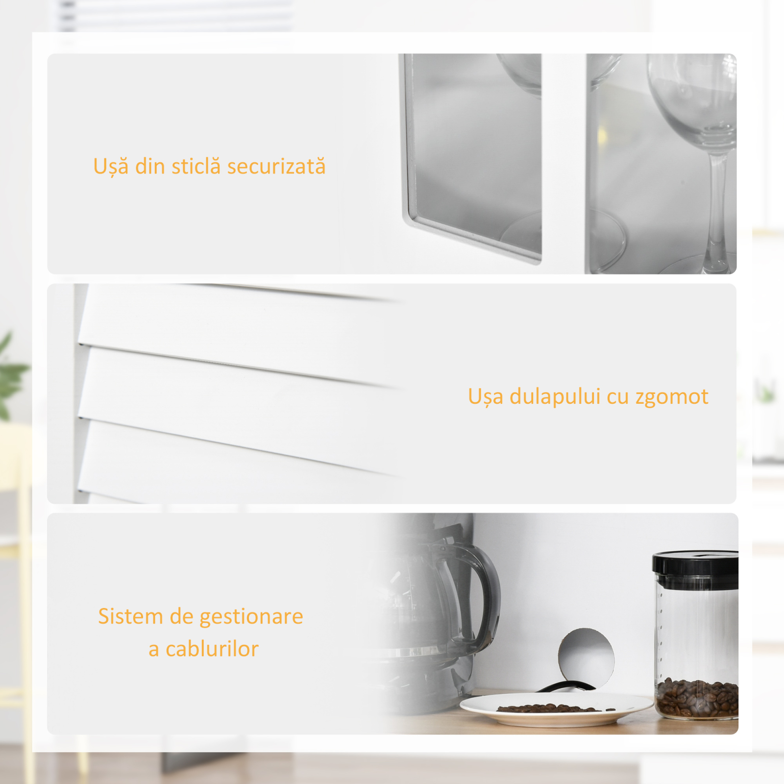 Organizeaza-ti bucataria intr-un mod cat mai practic si cat mai aspectuos. in acest sens poti avea nevoie de [BRAND NAME] dulap de bucatarie, din lemn, 68x39,5x170 cm, alb. O piesa de mobilier ce combina lemnul cu sticla, doua materiale care creeaza un design inedit, modern. Un astfel de dulap este si foarte util pentru ca dispune de diverse spatii de depozitare. in plus, are si spatiu special pentru cabluri daca vrei sa asezi cuptorul cu microunde pe el sau alte aparate electrocasnice de acest gen. [BRAND NAME] dulap de bucatarie, din lemn, 68x39,5x170 cm, alb este realizat din materiale rezistente care sunt foarte usor de curatat. in cele doua dulapuri de jos poti aseza diverse farfurii, oale, iar in cele de sus poti aseza paharele. Sertarele sunt ideale pentru tacamuri, astfel incat sa le ai pe toate la indemana. Usile dispun de inchidere magnetica.