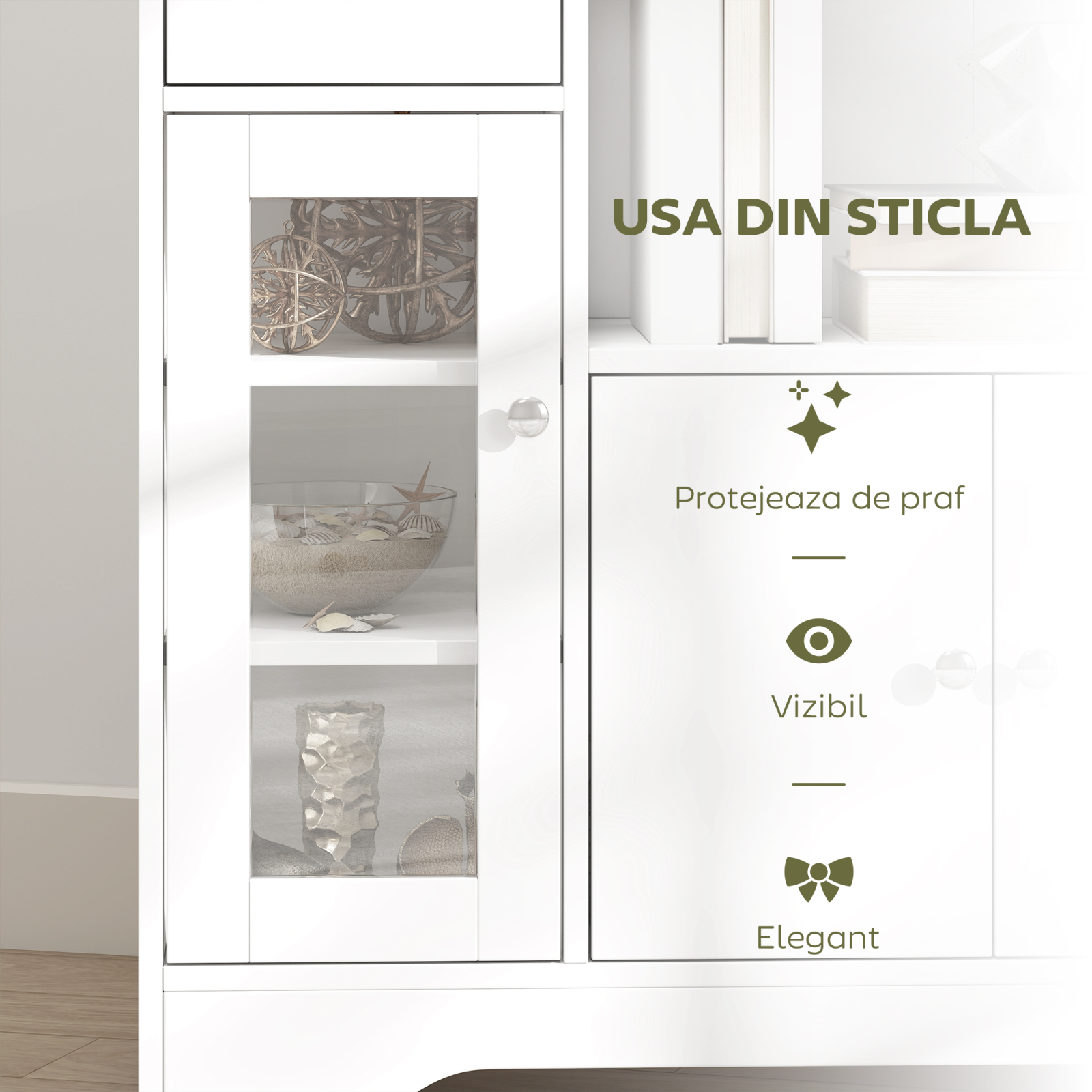 • SPAtIU GENEROS: Un compartiment deschis, un sertar compact, numeroase rafturi si un dulap cu 2 usi in aceasta comoda buffet cu design elegant ofera mult spatiu pentru organizarea farfuriilor, tacamurilor si ustensilelor de bucatarie. Usile din sticla si manerele din otel inoxidabil adauga un aer de eleganta discreta in locuinta ta.