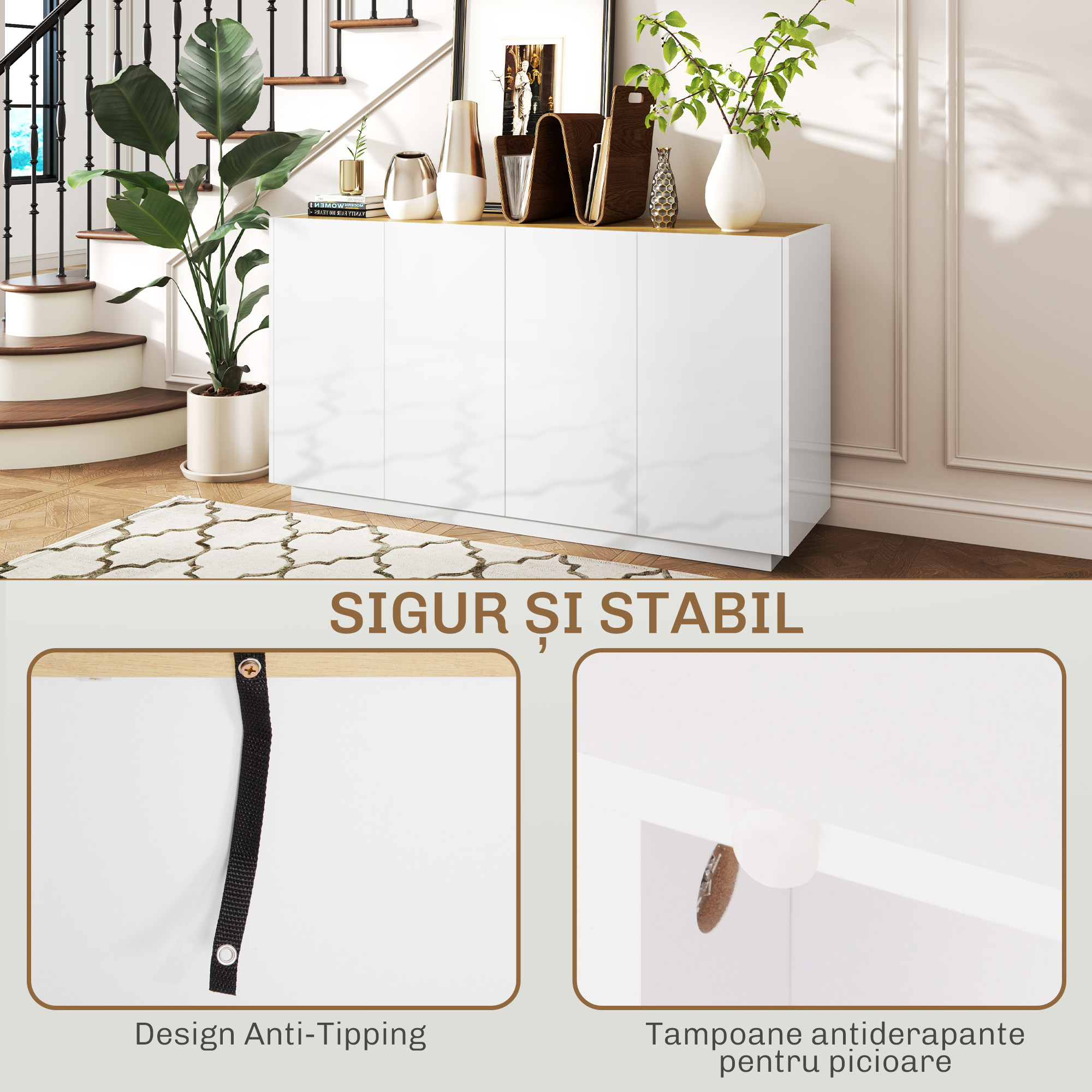Reinnoieste-ti spatiul cu bufetul modern [BRAND NAME]. Blatul sau de 137 cm este perfect pentru a aseza masina de cafea sau cuptorul cu microunde, iar cele doua dulapuri cu usi duble si rafturi reglabile ofera mult spatiu pentru lucrurile esentiale din bucataria ta. Bufetul de bucatarie are o eleganta finisare lucios alba cu detalii din lemn de pin vintage. Ideal ca mobilier bar, pentru hol si living.