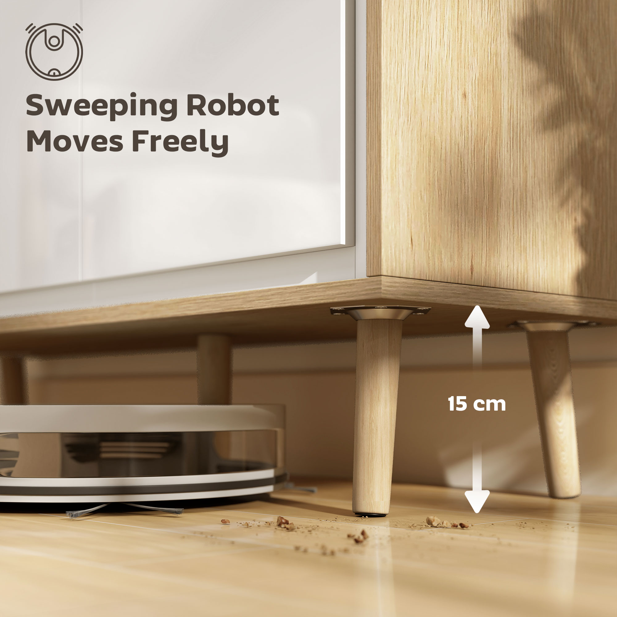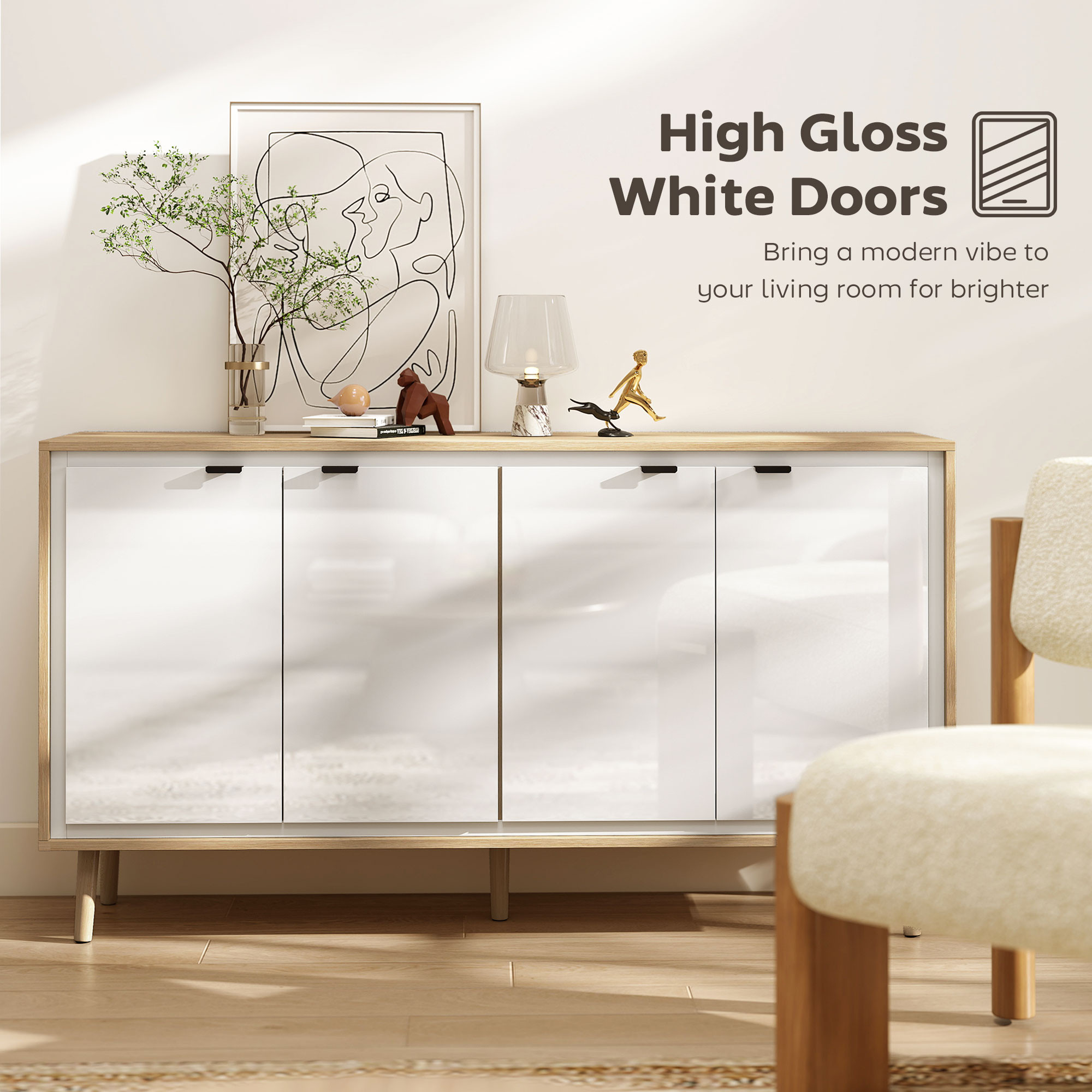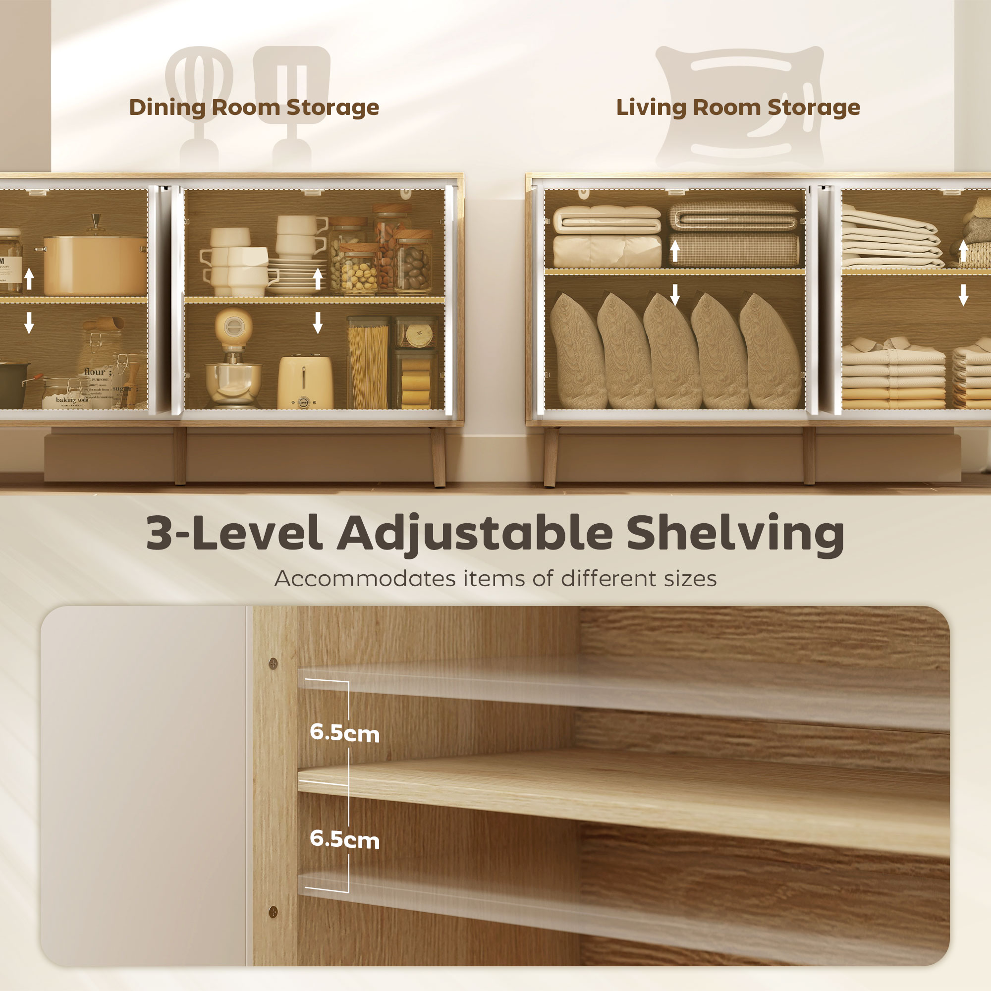 Daca zona ta de zi este mereu dezordonata, alege bufetul [BRAND NAME] pentru a organiza totul cu eleganta. Spatiul sau versatil permite depozitarea tuturor lucrurilor dorite, in timp ce structura sa fiabila si kitul anti-rasturnare asigura stabilitate. Acest bufet transforma spatiul tau intr-un refugiu armonios, organizat si sigur, de care toata lumea se poate bucura.