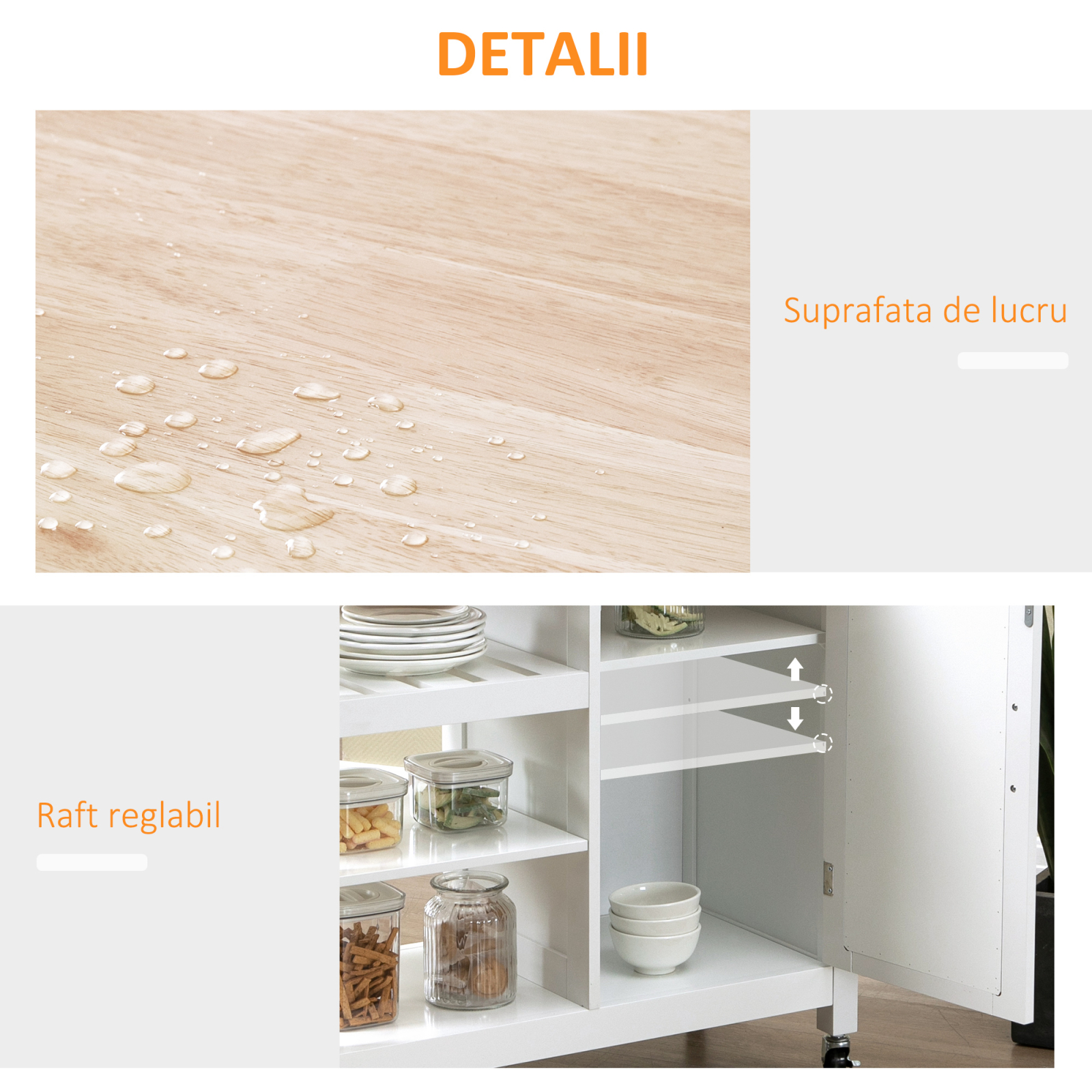 Ideal pentru organizarea spatiului din bucatarie, acest carucior mobil include un sertar, un dulapior, o etajera cu 3 niveluri si un suport lateral pentru prosop. Cele 4 roti pivotante permit mutarea usoara, iar constructia din lemn si metal ofera durabilitate. Este practic si usor de integrat in orice decor.