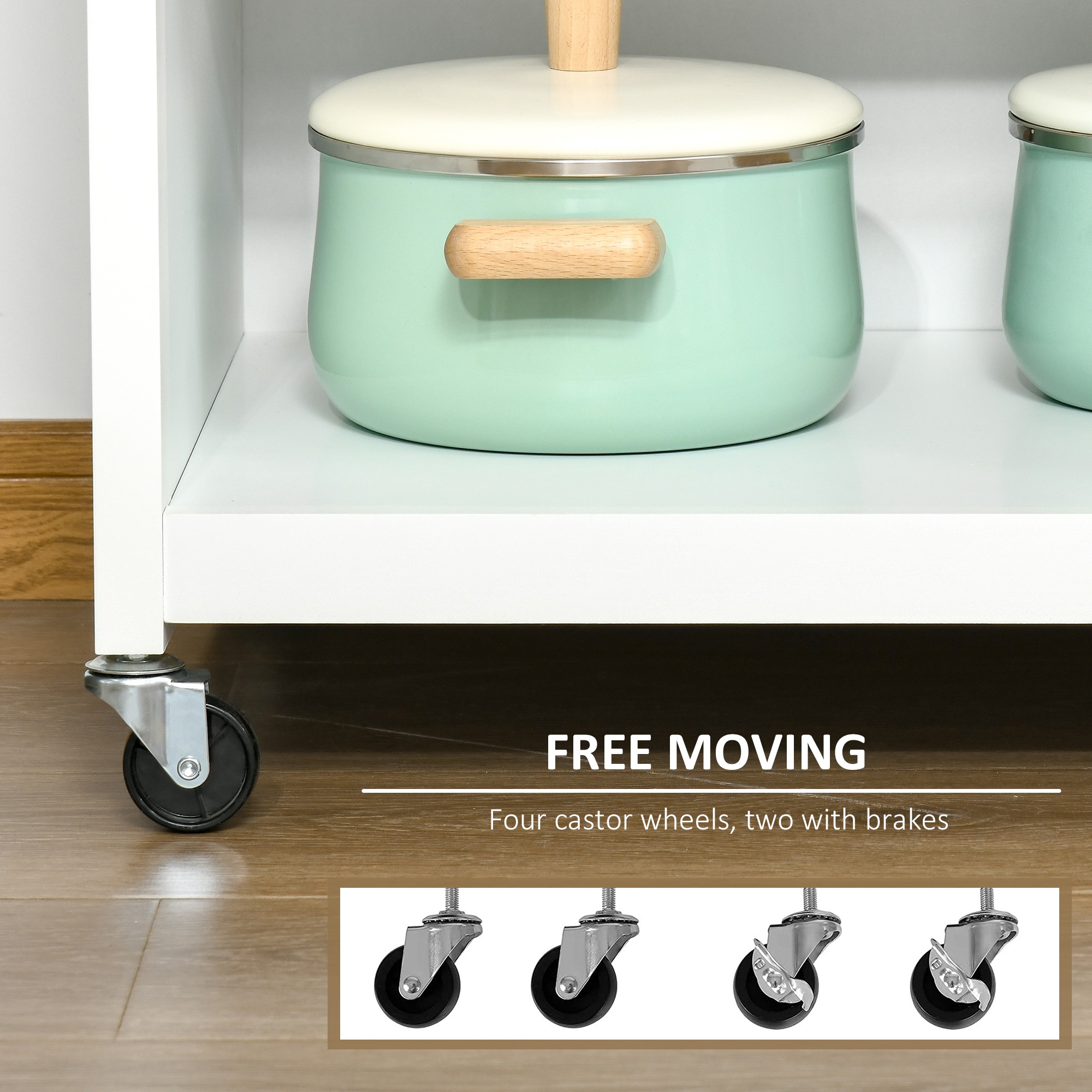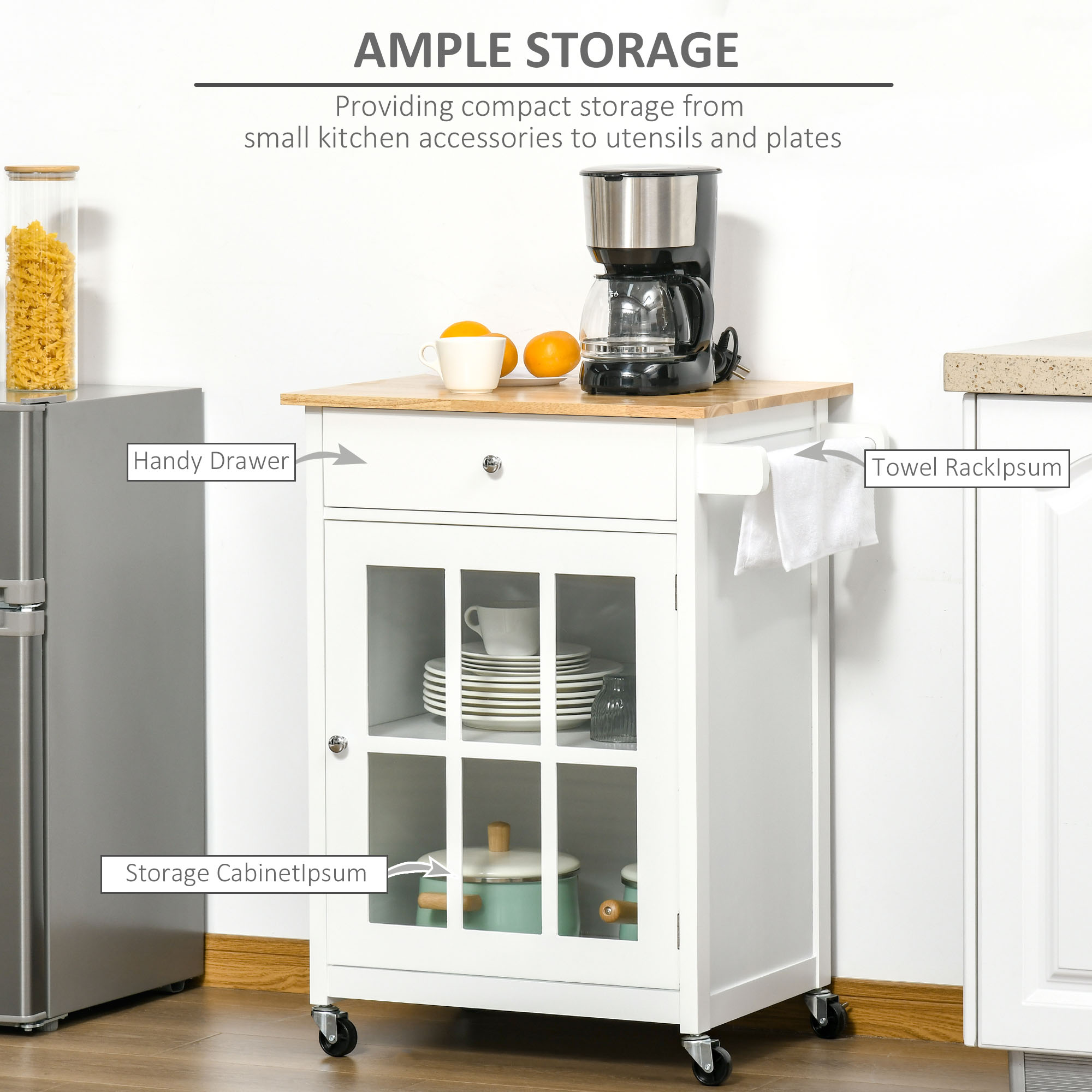 Indiferent daca sunteti expert in bucatarie sau doar un amator, atunci cand vine vorba despre cum sa va organizati cu siguranta cu totii apreciati [BRAND NAME] carucior de bucatarie, multifunctional, 67x48x86.5cm. Un dulap pe roti sau numiti-l cum doriti, cert este ca poate fi folosit in multiple moduri. [BRAND NAME] carucior de bucatarie, multifunctional, 67x48x86.5cm este realizat din panouri MDF, cu usa cu insertii din sticla, include si balamale. Suprafata sa poate fi folosita ca blat de lucru sau pentru servit de asemenea. Include roti, il puteti muta oriunde aveti nevoie, cu minim de efort. De asemenea, pe una din lateralele sale include un maner suport, ideal pentru prosoape. Descoperiti un sertar, usa ce se deschide usor si interior rafturi de depozitare. Daca va place sa fiti serviti ca in localurile cu staif, veti adora ideea de a avea si acasa [BRAND NAME] carucior de bucatarie, multifunctional, 67x48x86.5cm. De asemenea, il recomandam celor din HoReCa.