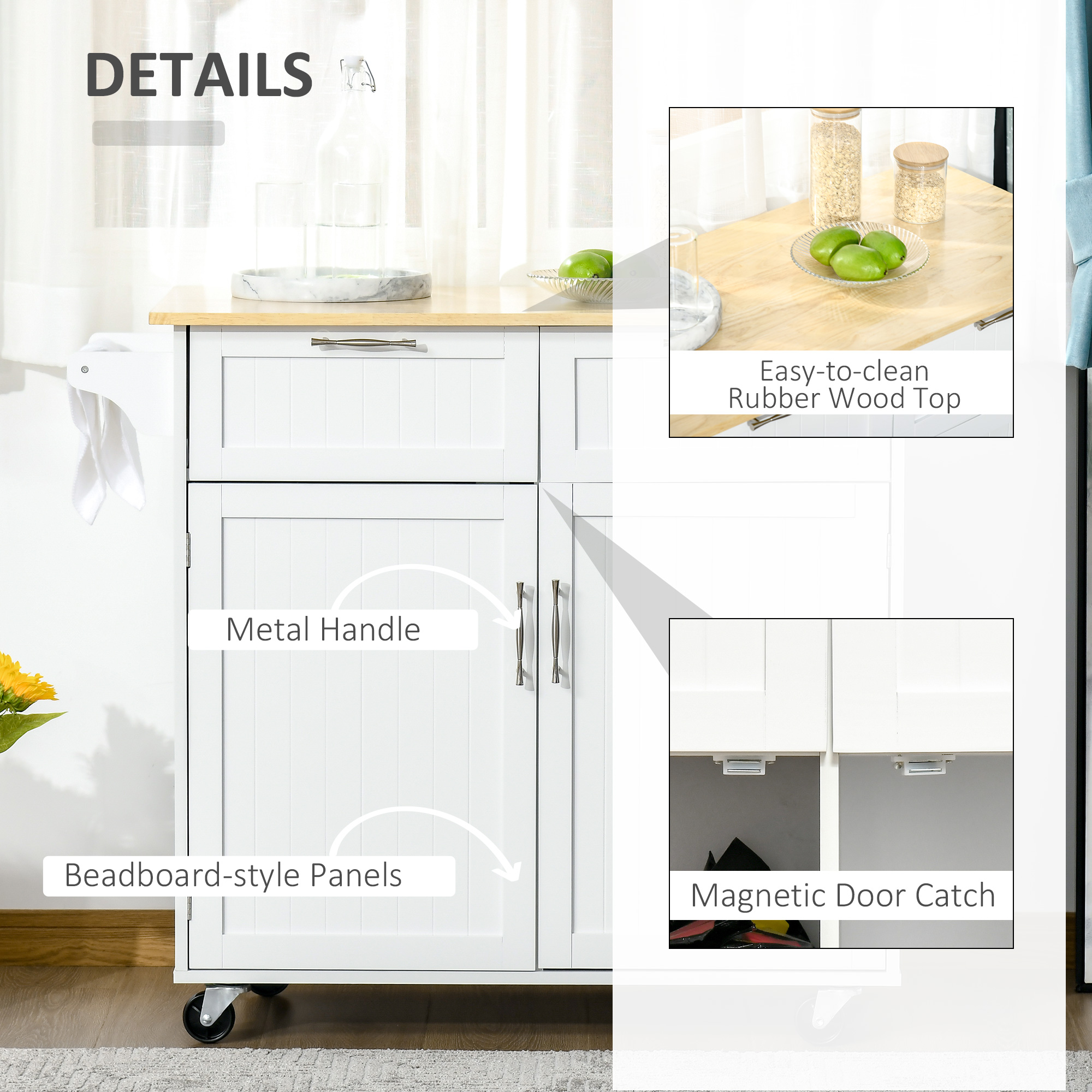Ati visat mereu la o bucatarie bine utilata? Sa o realizati este mai usor decat credeti - nu aveti nevoie decat de acest carucior de bucatarie [BRAND NAME]. Construit din MDF si lemn de cauciuc, este rezistent si compact, perfect chiar si pentru bucatariile mici. Are un blat mare, un sertar, un dulap si un suport pentru prosop: tot spatiul de care aveti nevoie pentru a va aranja accesoriile si pentru a le avea mereu gata de utilizare.