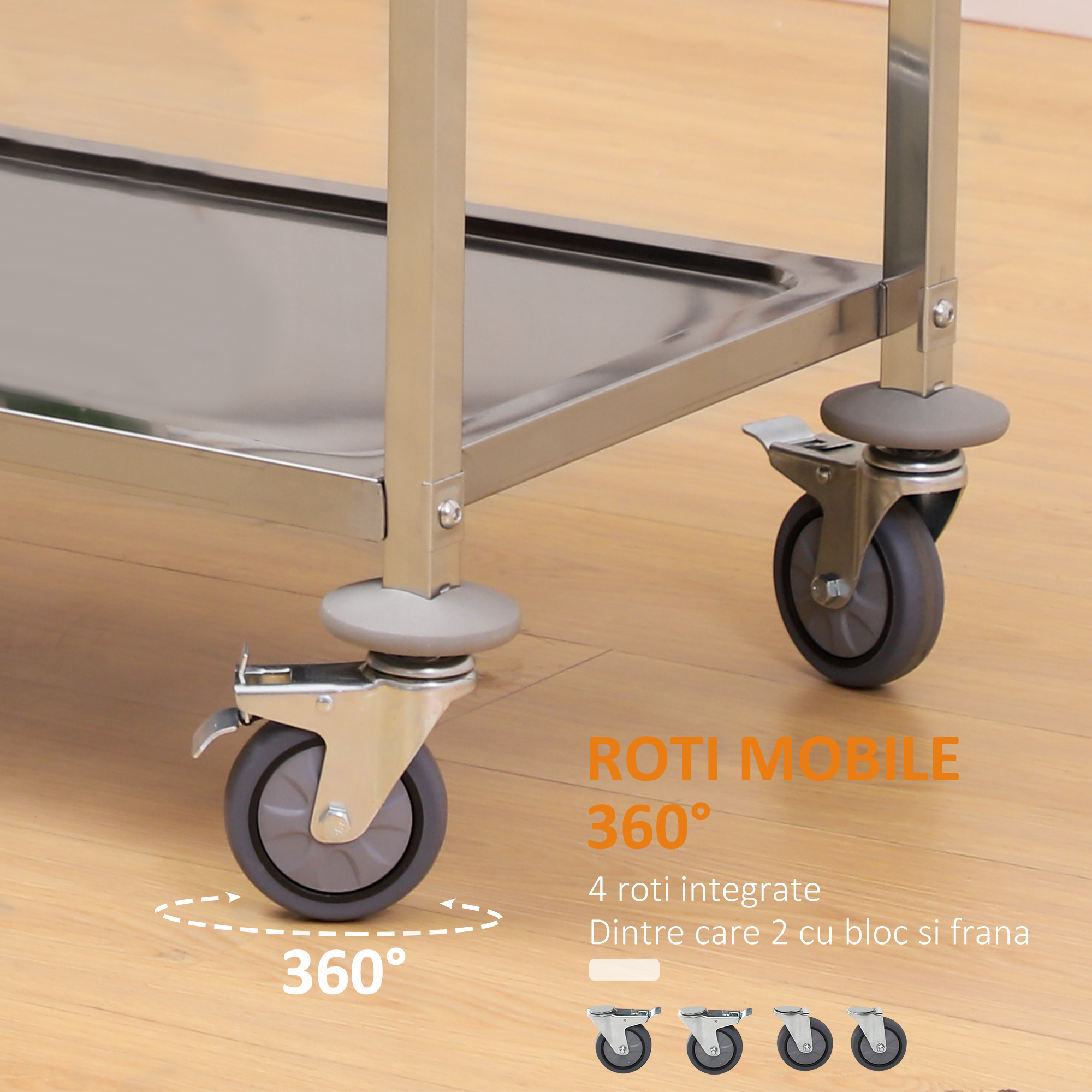 Organizarea bucatariei nu a fost niciodata mai usoara cu caruciorul nostru de bucatarie [BRAND NAME]. Fabricate din otel inoxidabil de inalta calitate, cele 3 etaje ofera spatiu amplu pentru o varietate de articole si ustensile. Cele 4 roti cu 2 frane faciliteaza deplasarea si repozitionarea in bucatarie sau acasa. Ideal pentru bucatariile cu spatiu limitat.