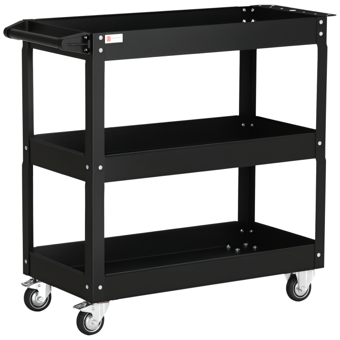 Caruciorul pentru unelte [BRAND NAME] cu roti dispune de trei rafturi spatioase, oferind mult loc pentru organizarea si depozitarea sculelor tale. Structura sa din otel laminat la rece garanteaza durabilitate, in timp ce cele patru roti-dintre care doua cu frane-il fac usor de mutat si fixat acolo unde este necesar. Un adaos indispensabil pentru orice garaj sau atelier.