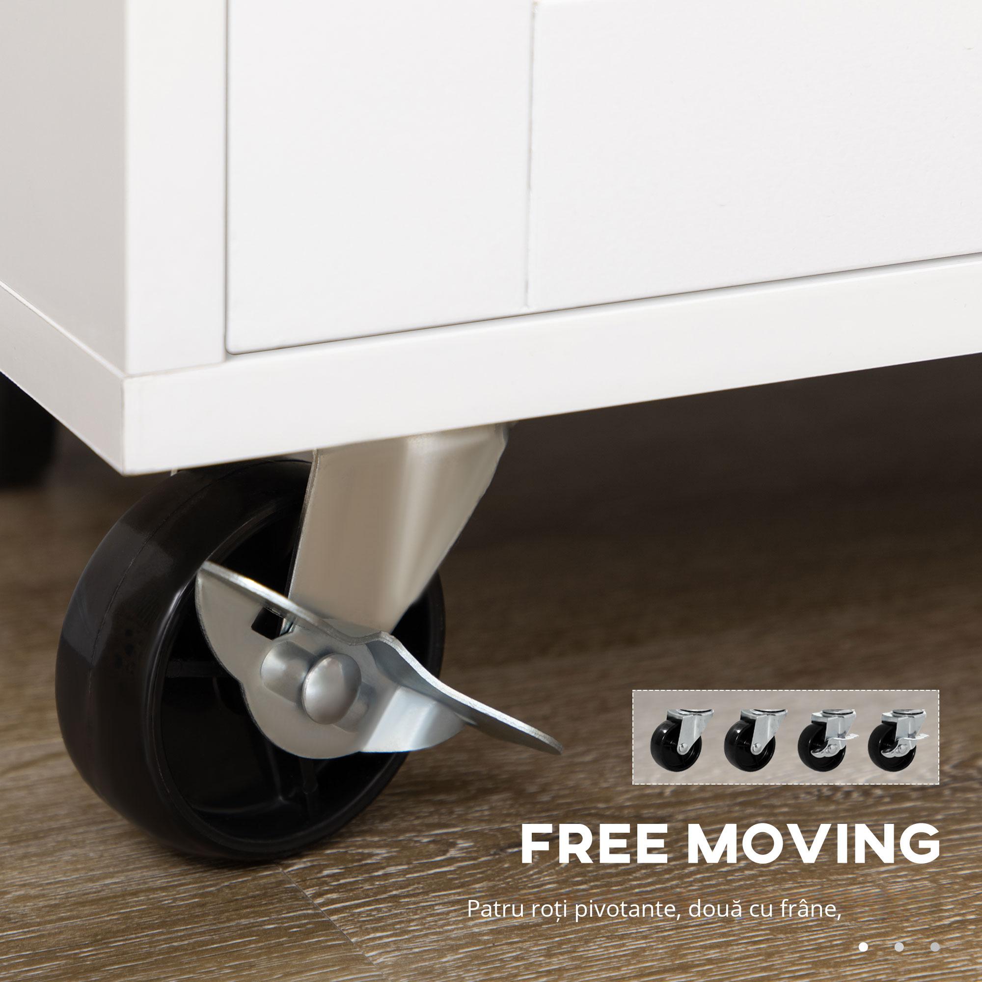 Caruciorul de bucatarie [BRAND NAME] este asistentul indispensabil pentru orice ocazie. Cu un sertar practic si un dulap cu 2 usi, va ofera spatiu suficient pentru a mentine in ordine accesoriile si alimentele. Este dotat cu un suport pentru condimente si o bara pentru prosoape de bucatarie pentru ca totul sa fie la indemana. Cu ajutorul rotilor, veti putea muta caruciorul de bucatarie oriunde aveti nevoie. Cu tonalitatile sale de culoare neutra se va potrivi perfect diferitelor tipuri de mobilier de bucatarie.