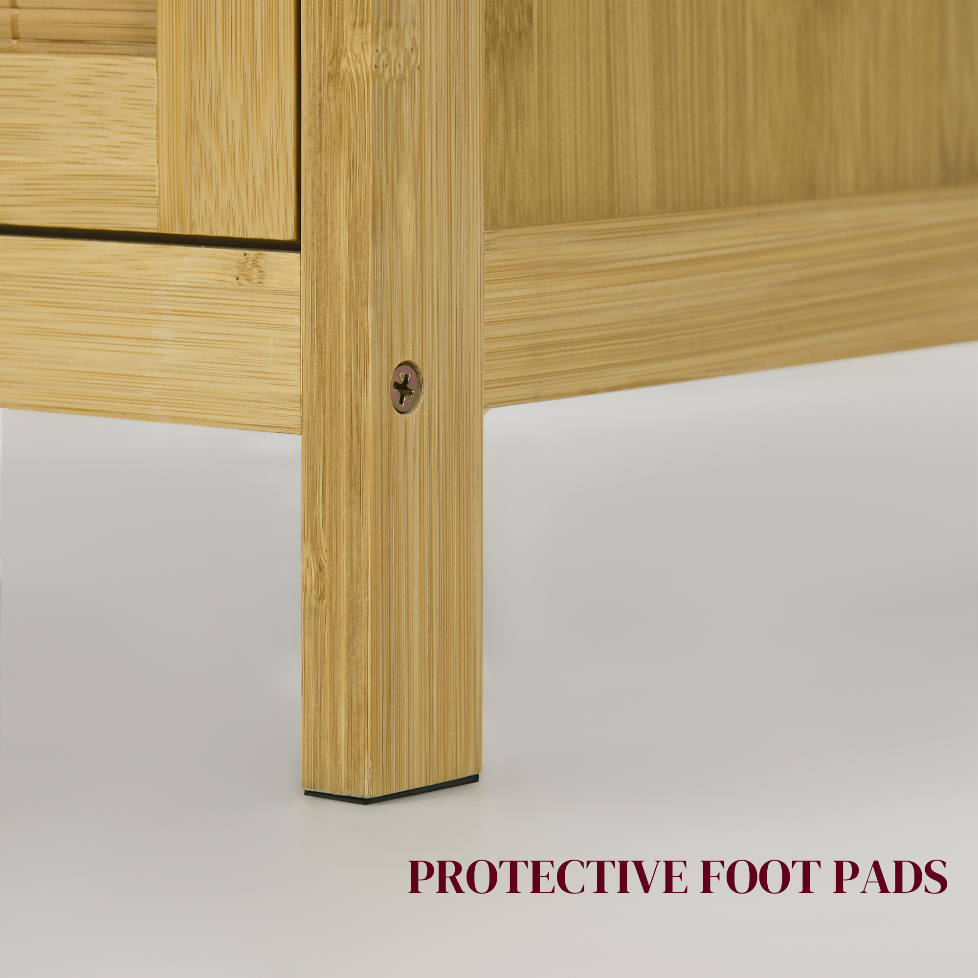 Fa-ti spatiul mai primitor cu credenza [BRAND NAME], realizata integral din bambus cu o culoare naturala calda. Dotata cu usi din rattan si manere rotunde de design, acest mobilier cu doua usi ofera un interior spatios pe doua niveluri, perfect pentru a organiza baia, dormitorul sau sufrageria. Picioarele antialunecare si dispozitivul anti-rasturnare asigura stabilitate si siguranta.