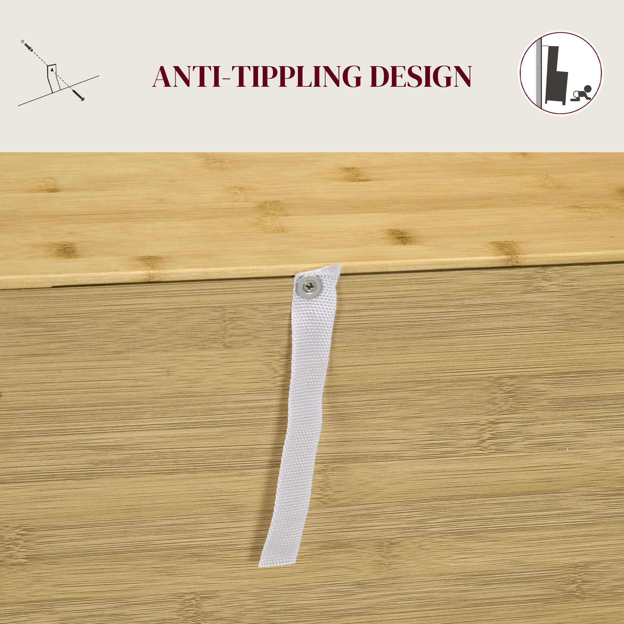 • STABIL sI SIGUR: Dotat cu picioare antialunecare si un kit anti-rasturnare, dulapul cu doua usi asigura o stabilitate si siguranta sporite.