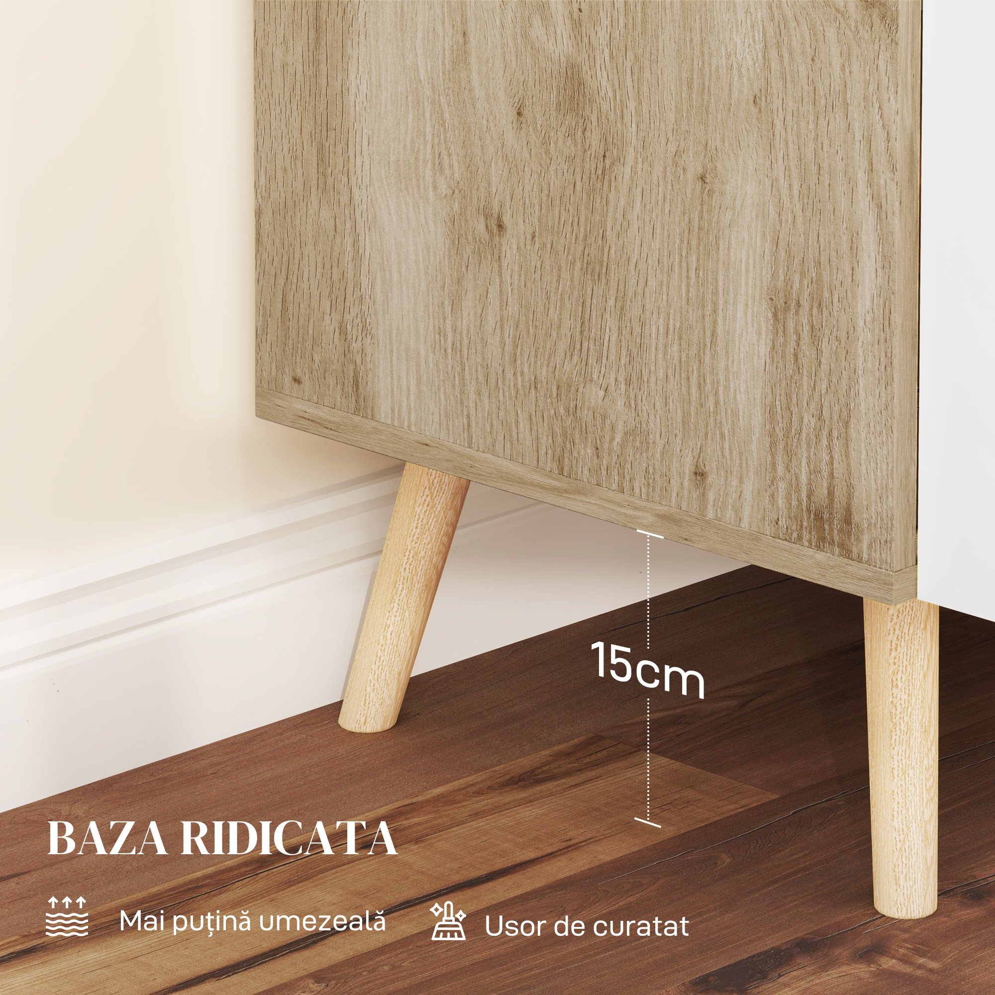 Mobilierul multifunctional [BRAND NAME] extinde livingul cu un design modern ce unesc albul si nuante lemnoase intr-un stil minimalist. Raftele reglabile si baza inalta asigura organizare optima, protejandu-le de umezeala, iar sistemul anti-rasturnare garanteaza stabilitate.