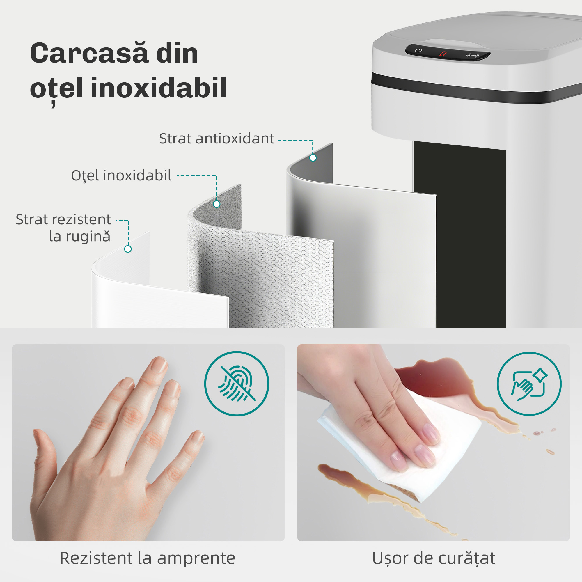 Faciliteaza momentele de eliminare a deseurilor cu cosul de gunoi [BRAND NAME]. Structura este prevazuta cu senzor cu infrarosu, buton de deschidere manuala si un design compact de 12 litri pentru a depozita o cantitate moderata de gunoi. Galeata detasabila si inelul pentru sac asigura practicitate si ordine zilnic in gestionarea deseurilor.