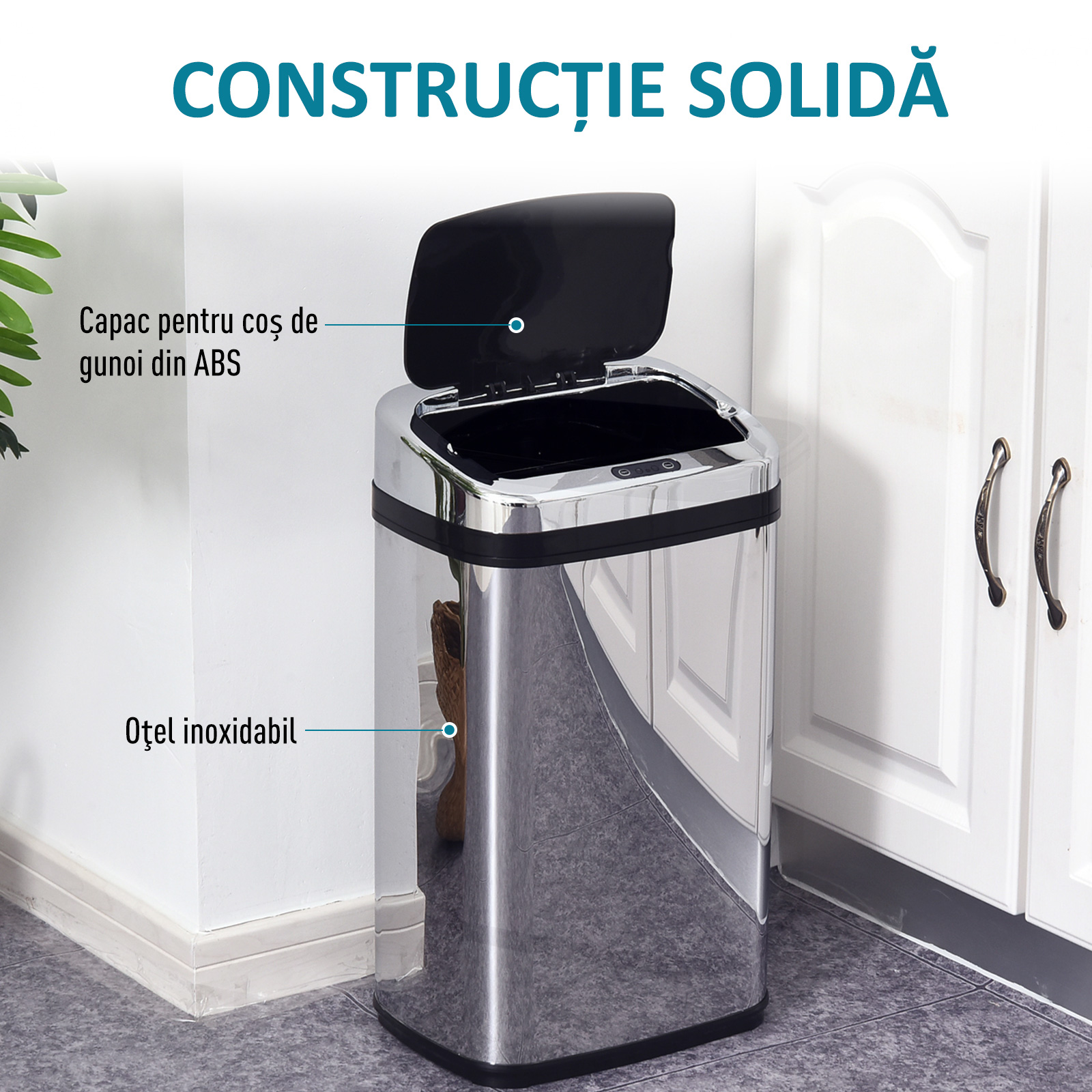 Ideal pentru bucatarii si bai, cosul de gunoi automat cu infrarosu [BRAND NAME] 30L este fabricat din otel inoxidabil pentru a asigura gestionarea igienica a deseurilor fara a fi nevoie de contact direct. Designul sau elegant si versatil se imbina bine cu orice decor. Functioneaza cu 4 baterii AA (neincluse in pachet) si vine cu un capac detasabil si o clema pentru sac. Simplificati-va rutina zilnica si faceti curatenia floare la ureche, mentinand in acelasi timp un mediu sanatos si ordonat.