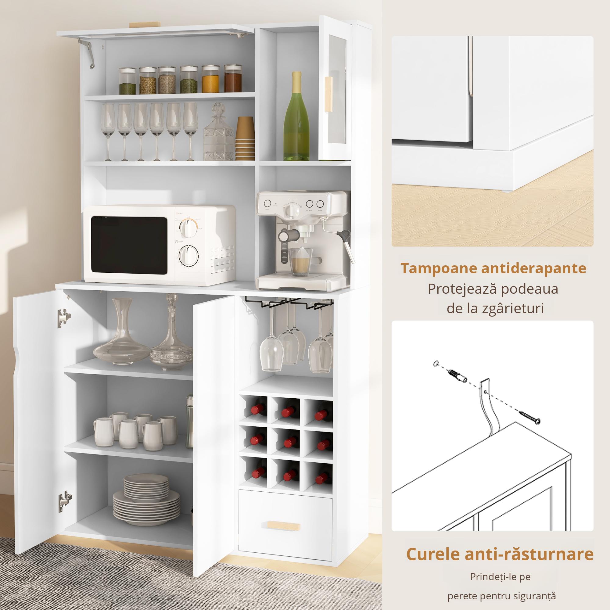 Transformati bucataria intr-un spatiu organizat si elegant cu acest dulap [BRAND NAME] multifunctional: zona depozitare vinuri, sertare utile si blat pentru cuptor cu microunde. Buffet-ul include compartiment pentru vinuri, vitrina cu sticla si suprafete de depozitare practice, perfecte intr-un decor modern. Fabricat din lemn rezistent, design contemporan si finisaj neutru - ideal pentru living, dining sau bucatarie. Cuvinte-cheie SEO: dulap bucatarie, depozitare vinuri, bufet modern, dulap cu microunde.