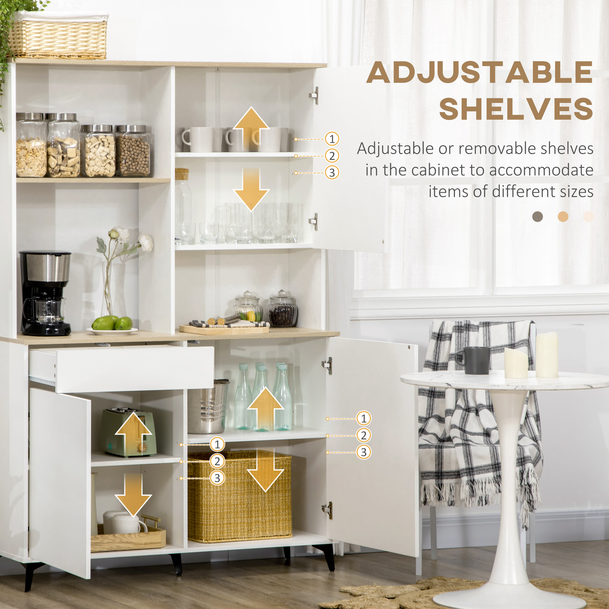 Dulap de bucatarie independent, dulap de depozitare modern, dulap pentru microunde cu usi si rafturi reglabile, 180 cm, alb