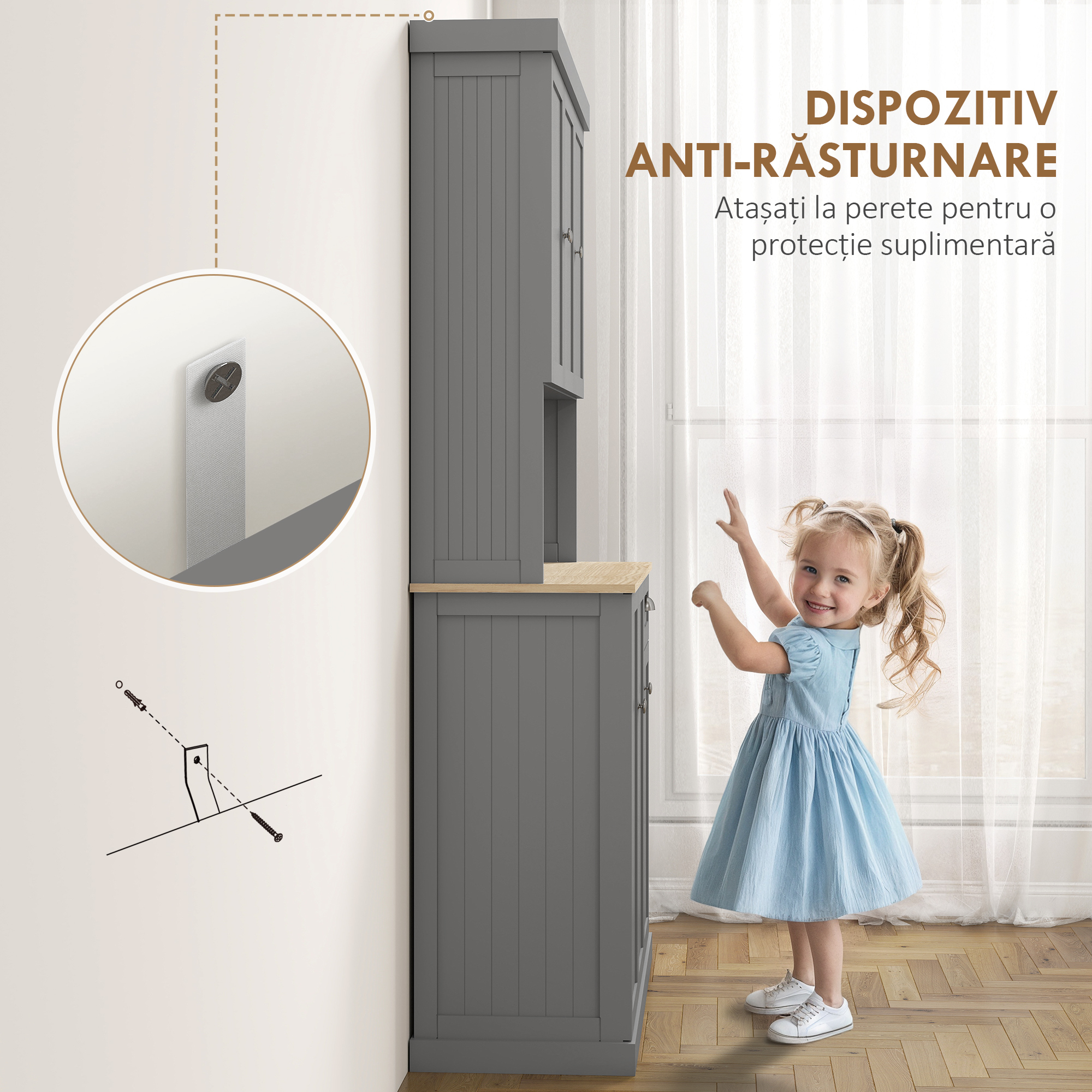 - SIGURANtA PE PRIMUL LOC: Proiectat pentru a-ti oferi o utilizare in deplina siguranta, dulapul nostru de bucatarie este echipat cu un dispozitiv anti-rasturnare care se fixeaza pe perete, asigurand stabilitatea si prevenind riscul de accidente.