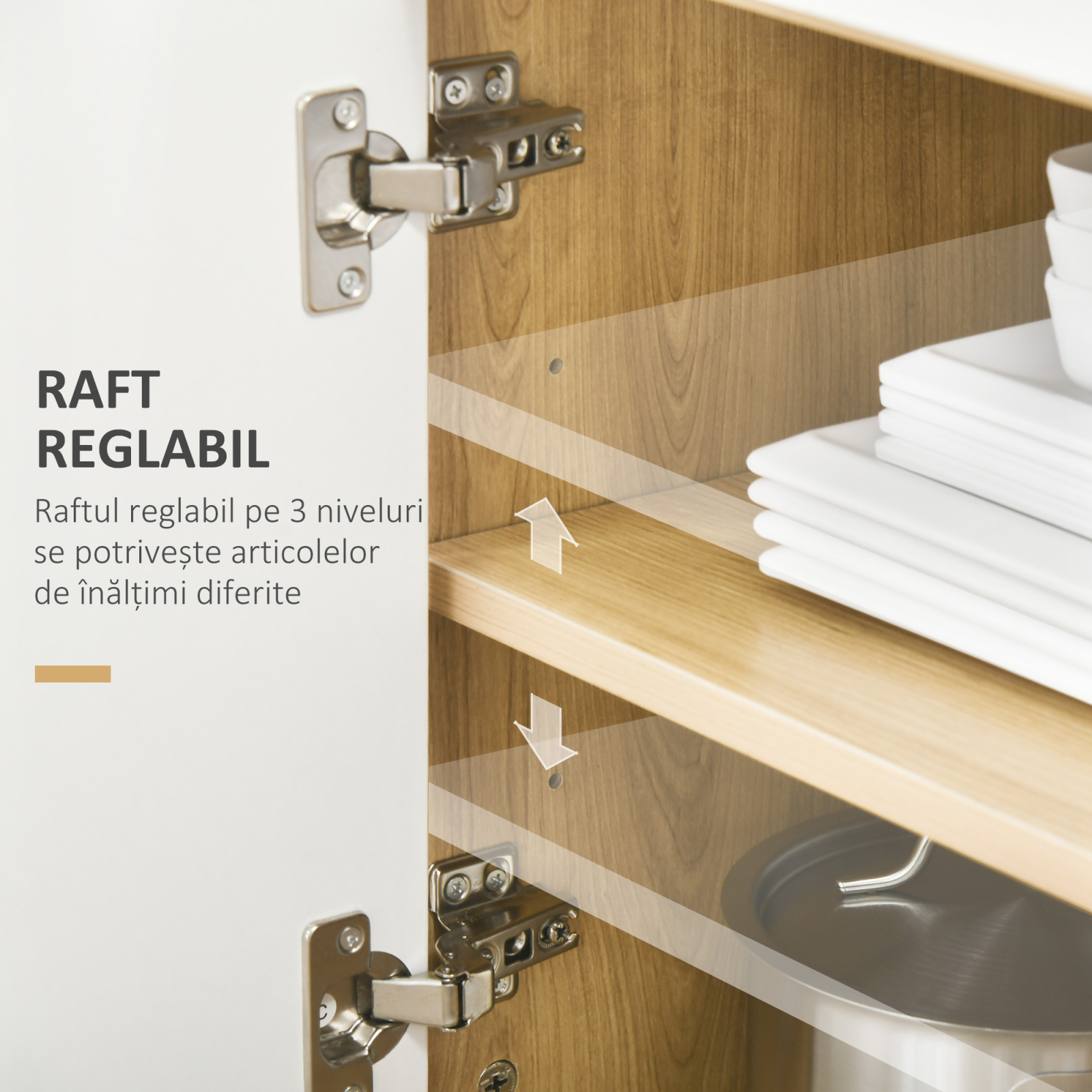 Maximizeaza spaţiul in bucatarie cu dulapul [BRAND NAME] pentru cuptor cu microunde. Gandit ca un mobilier multifunctional, ofera o sectiune deschisa pentru microunde, un sertar practic si doua dulapuri inchise pentru depozitare. Rafturile reglabile permit organizarea vesela, aparate mici si ustensile. Designul modern alb si ergonomic optimizeaza functionalitatea.