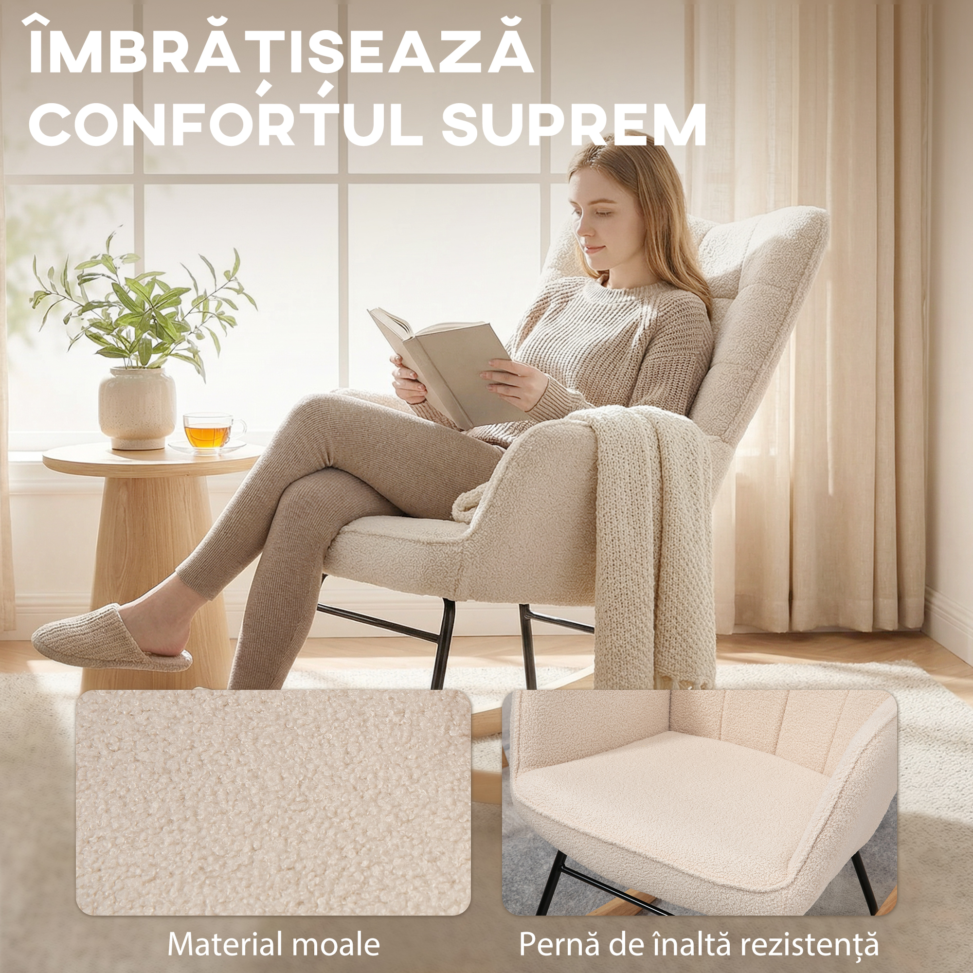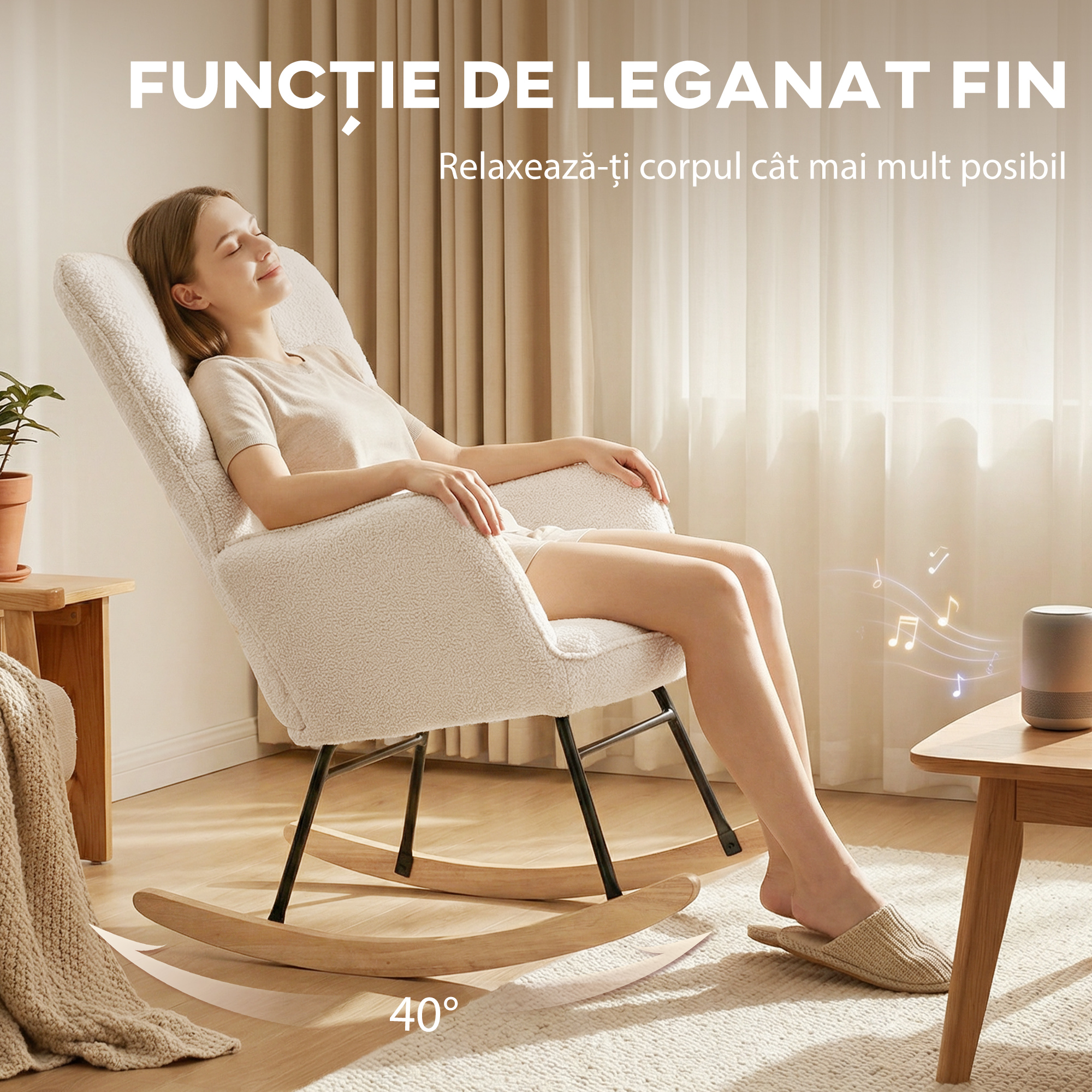 Transformati livingul sau dormitorul intr-un spatiu relaxant cu produsul in culoare bej. Fotoliul balansoar stabilizeaza elegant spatiul si ofera confort ergonomic pentru lectura sau rasfat. Structura robusta din lemn de calitate sustine fiecare miscare in siguranta. Perfect pentru momente de relaxare in casa, combinand stil si functionalitate durabila.