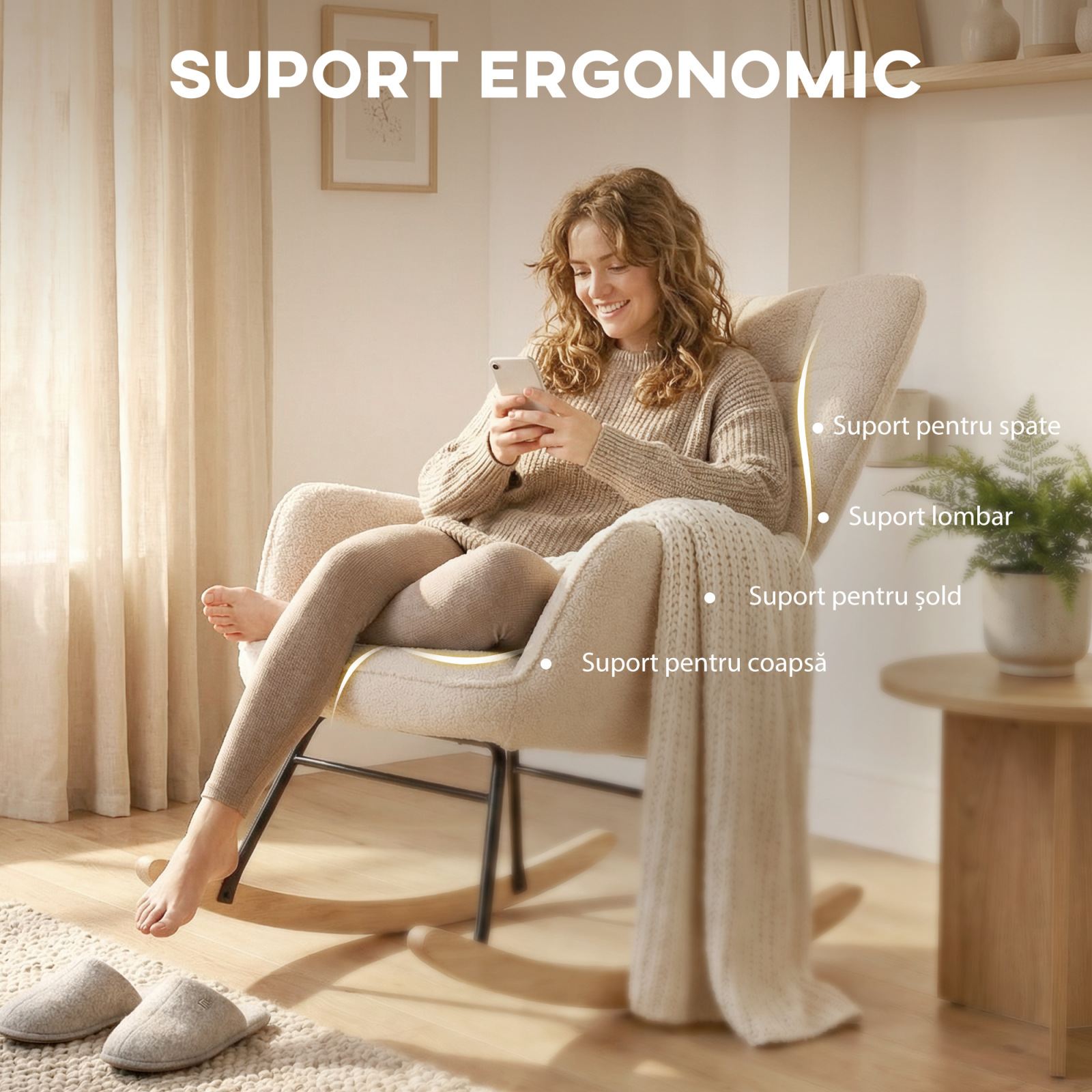 Transformati livingul sau dormitorul intr-un spatiu relaxant cu produsul in culoare bej. Fotoliul balansoar stabilizeaza elegant spatiul si ofera confort ergonomic pentru lectura sau rasfat. Structura robusta din lemn de calitate sustine fiecare miscare in siguranta. Perfect pentru momente de relaxare in casa, combinand stil si functionalitate durabila.