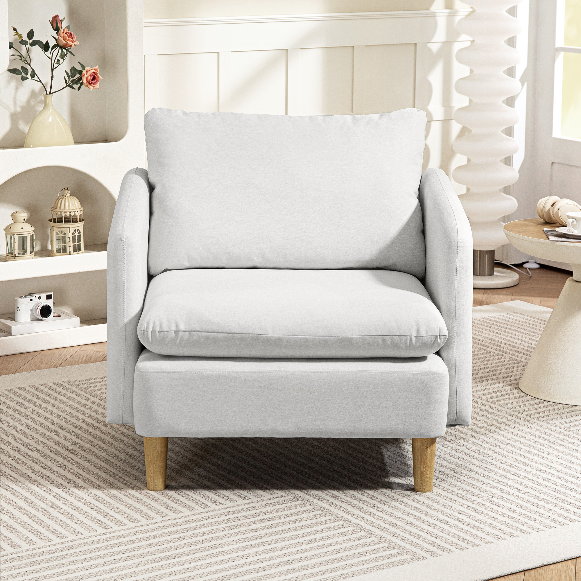 Descopera confortul de lux al fotoliului [BRAND NAME], cu un design dotat cu arcuri de buzunar si o perna de spate extra-densa. Scaunul sau larg de 73 cm ofera multiple pozitii de relaxare, de la citire la odihna cu picioarele incrucisate, toate intr-un stil sofisticat cu tapiterie placuta si respirabila, asemanatoare inului. Perfect pentru a te uita la TV, a juca jocuri sau a te destinde, acest fotoliu redefineste confortul in orice ambient.