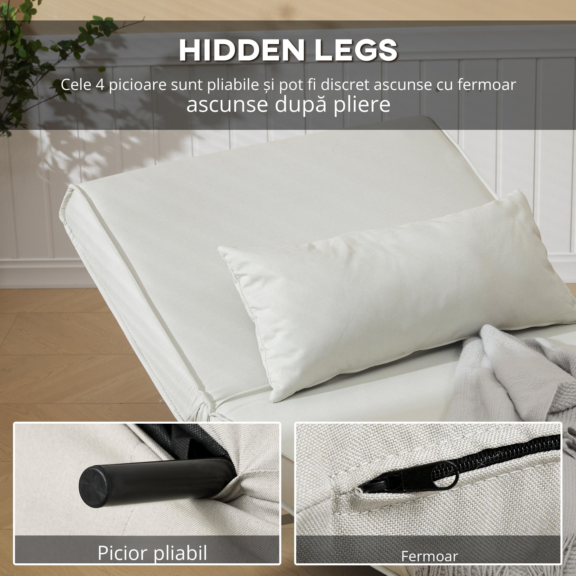 Tuturor ne place mobilierul versatil, util mai ales celor care locuiesc in spatii mici sau pentru cei care, desi au spatiu, il valorifica la maximum. Acest fotoliu pat [BRAND NAME] este excelent pentru a va mobila practic camerele si pentru a oferi o solutie pentru musafirii dvs. Tapitat cu o tesatura placuta cu efect de in, acest fotoliu cu spatar rabatabil se transforma intr-un pat in deplina siguranta, pastrand mereu o stabilitate excelenta.