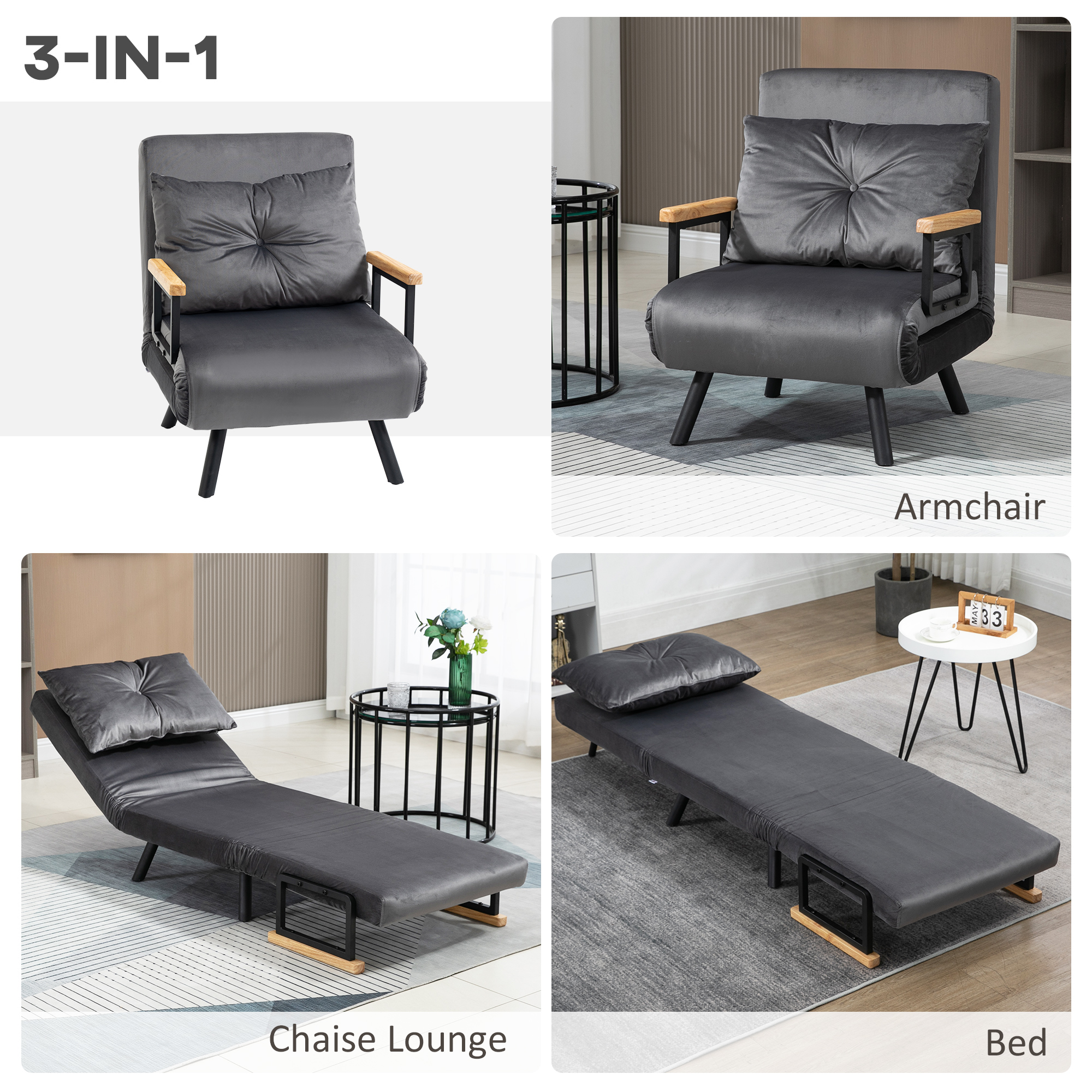 Lasati-va inconjurati de confortul fotoliului-pat [BRAND NAME], ideal pentru a va relaxa si a dormi confortabil in aceeasi structura. Construita dintr-o structura rezistenta din otel, fotoliul ofera un spatar reglabil in 5 pozitii pentru a va asigura confortul maxim. Generos capitonata si imbracata in material catifelat, structura include, de asemenea, un perna suplimentara pentru a va oferi un suport optim.