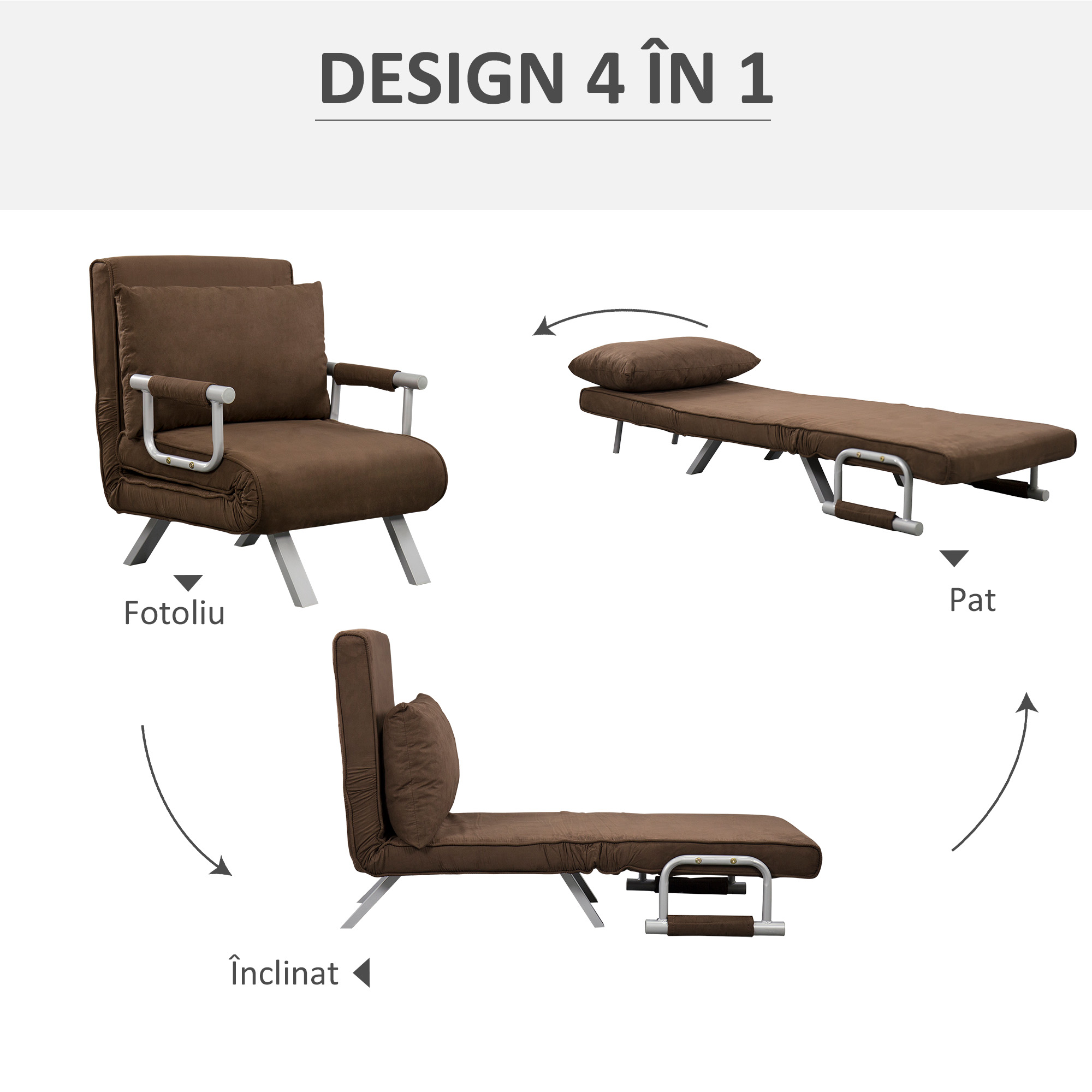 Acest fotoliu pat [BRAND NAME] este ideal pentru living, birou sau sufragerie, perfect pentru a gazdui oaspeti peste noapte sau pentru o amiaza lenesa in sufragerie. Dotat cu un spatar reglabil in cinci pozitii, acest fotoliu modern iti permite sa gasesti confortul maxim. Se converteste usor de la fotoliu la pat, facandu-l ideal pentru momente de relaxare si pentru a crea un loc de dormit in cateva secunde. Husa pernei este detasabila, pentru a oferi usurinta la curatare.