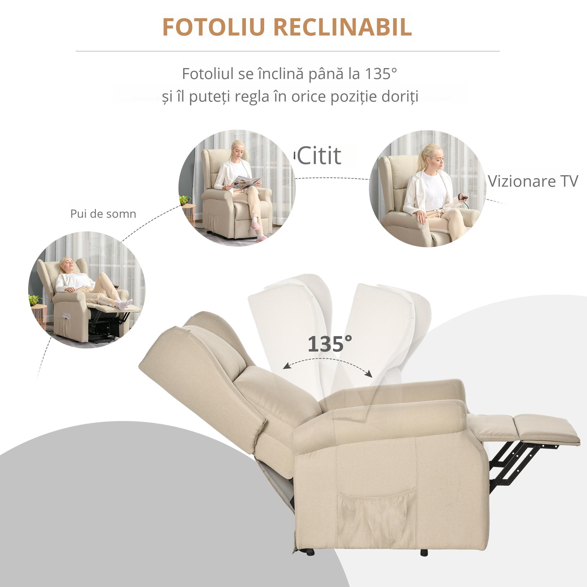 Acest recliner [BRAND NAME] elegant, gratios si foarte confortabil permite persoanelor in varsta sau convalescente sa se ridice mai usor datorita functiei de ridicare. Scaunul [BRAND NAME] imbunatateste ridicarea, mobilitatea, confortul si independenta intr-un mod simplu: trebuie doar sa apasati butonul corespunzator de pe telecomanda furnizata, scaunul va face restul. Este deosebit de potrivit pentru cei care sufera de artrita, dureri musculare sau alte probleme de sanatate. In plus, fotoliul se intinde pana la 135 de grade, facandu-l ideal pentru vizionarea la televizor, citire, dormit sau doar relaxare. Va deveni partenerul dvs. de viata prin excelenta!