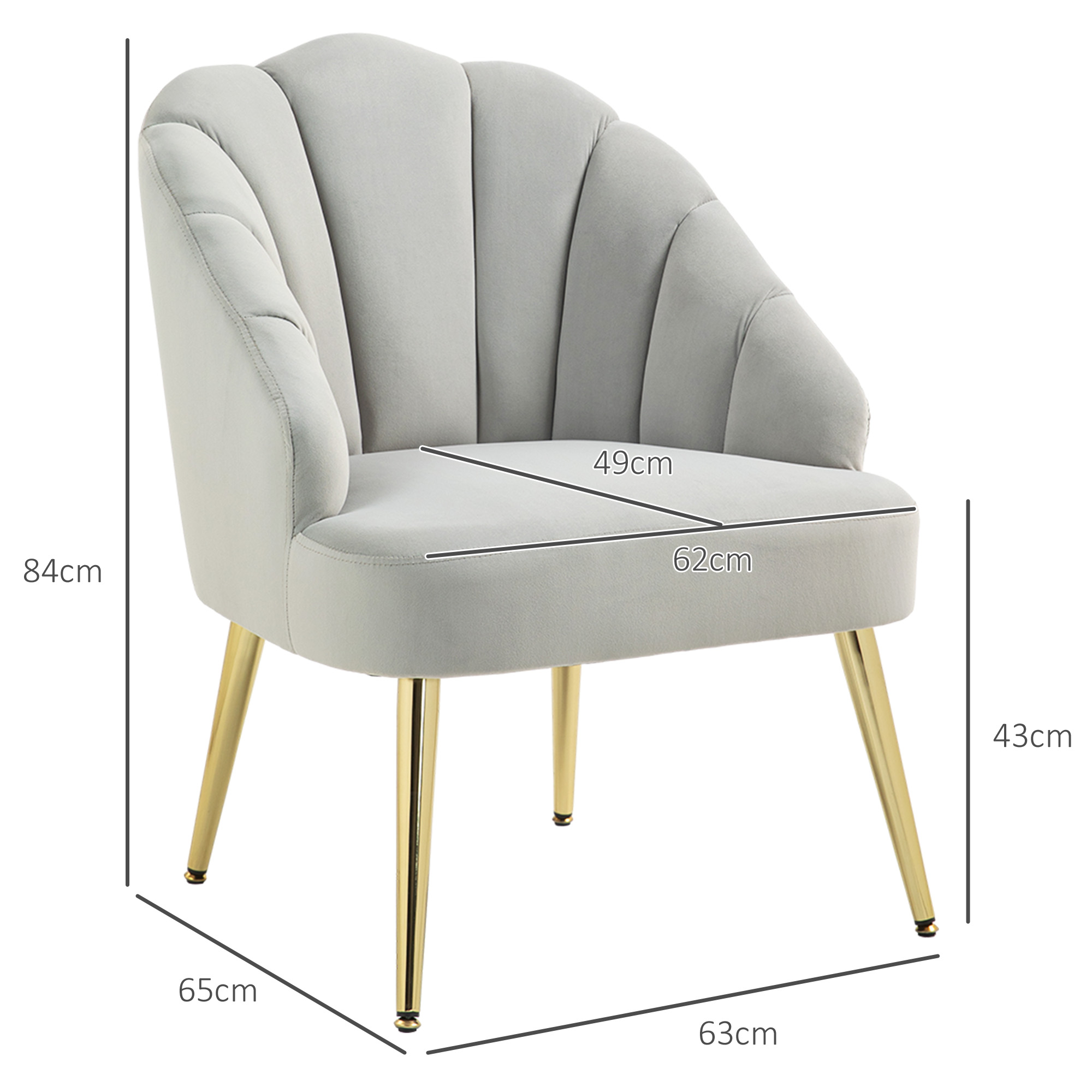 Aduce toata eleganta stilului art deco in casa ta cu acest fotoliu din catifea [BRAND NAME]. Spatarul in forma de cochilie adauga o nota originala, perfecta pentru a atrage atentia in orice incapere. Fotoliul are o intaritura confortabila si o tapiterie moale cu efect de catifea, care iti asigura o sedere confortabila in orice moment. Picioarele din otel nu numai ca ofera stabilitate maxima, dar si finisajul auriu adauga o nota de glamour!