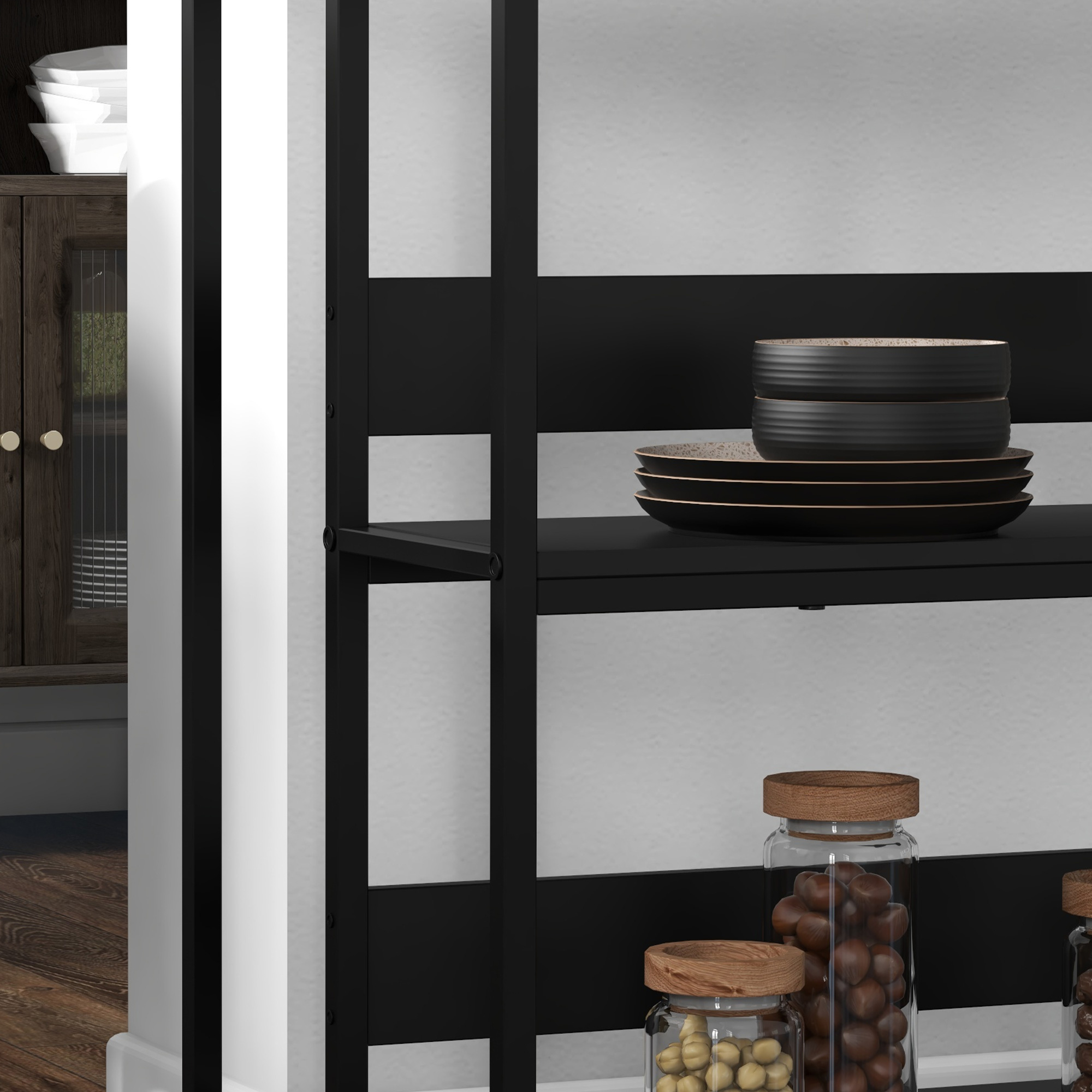 Insula de Bucatarie cu Rafturi Deschise Carucior de Bucatarie cu Blat cu Imitatie de Furnir cu Textura de Marmura Alba cu Picioruse Reglabile pentru Camera de Luat Masa Camera de Zi Negru