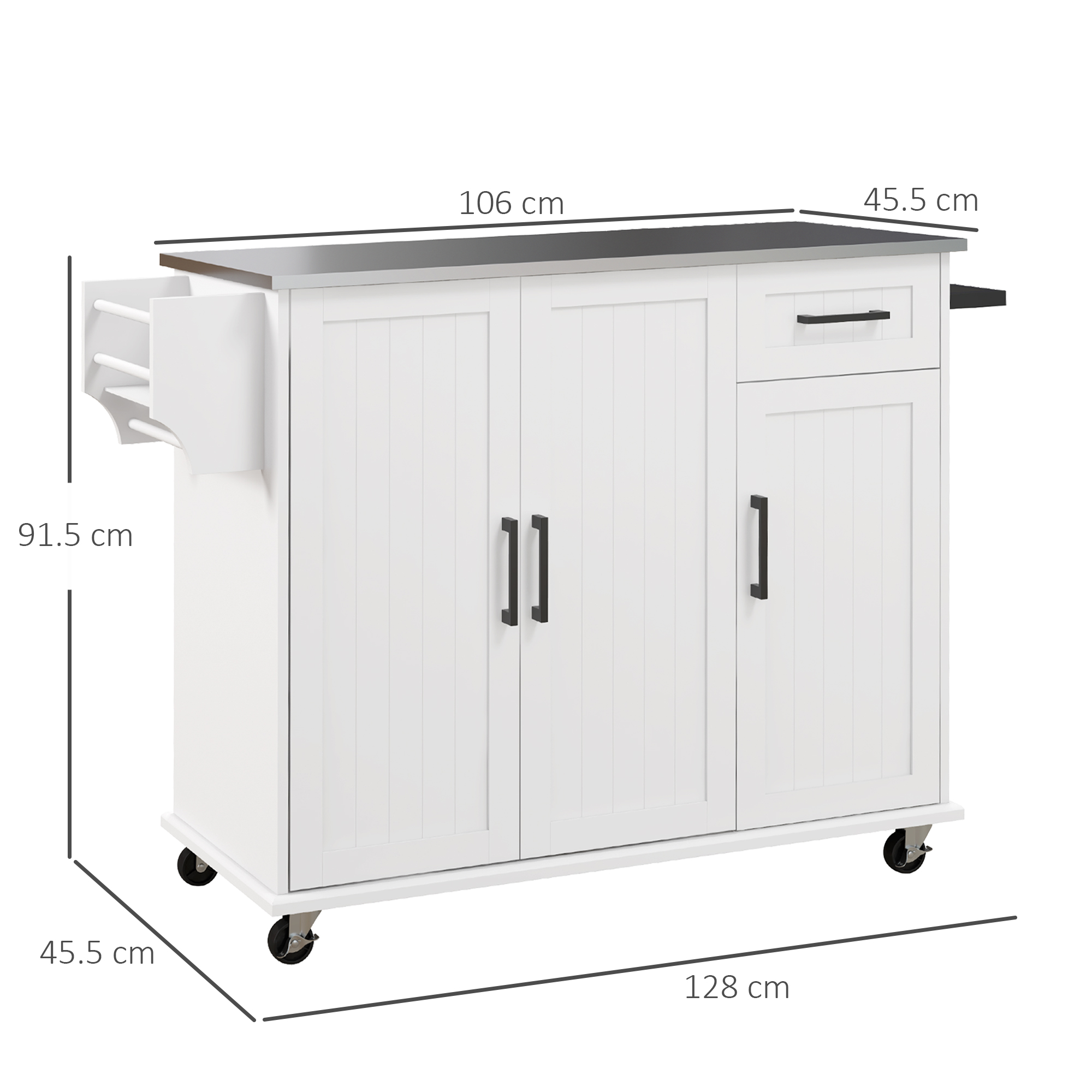 Reinventati zona de gatit cu insula [BRAND NAME] cu roti: include un sertar, trei dulapuri si blat din otel solid - ideala pentru depozitare, preparare si organizare in bucatarie. Mobilierul mobil, din otel rezistent la uzura si design ergonomic, va ofera flexibilitate si spatiu suplimentar in orice bucatarie. Cuvinte-cheie: insula bucatarie depozitare, mobilier bucatarie pe roti, insula [BRAND NAME], blat otel.