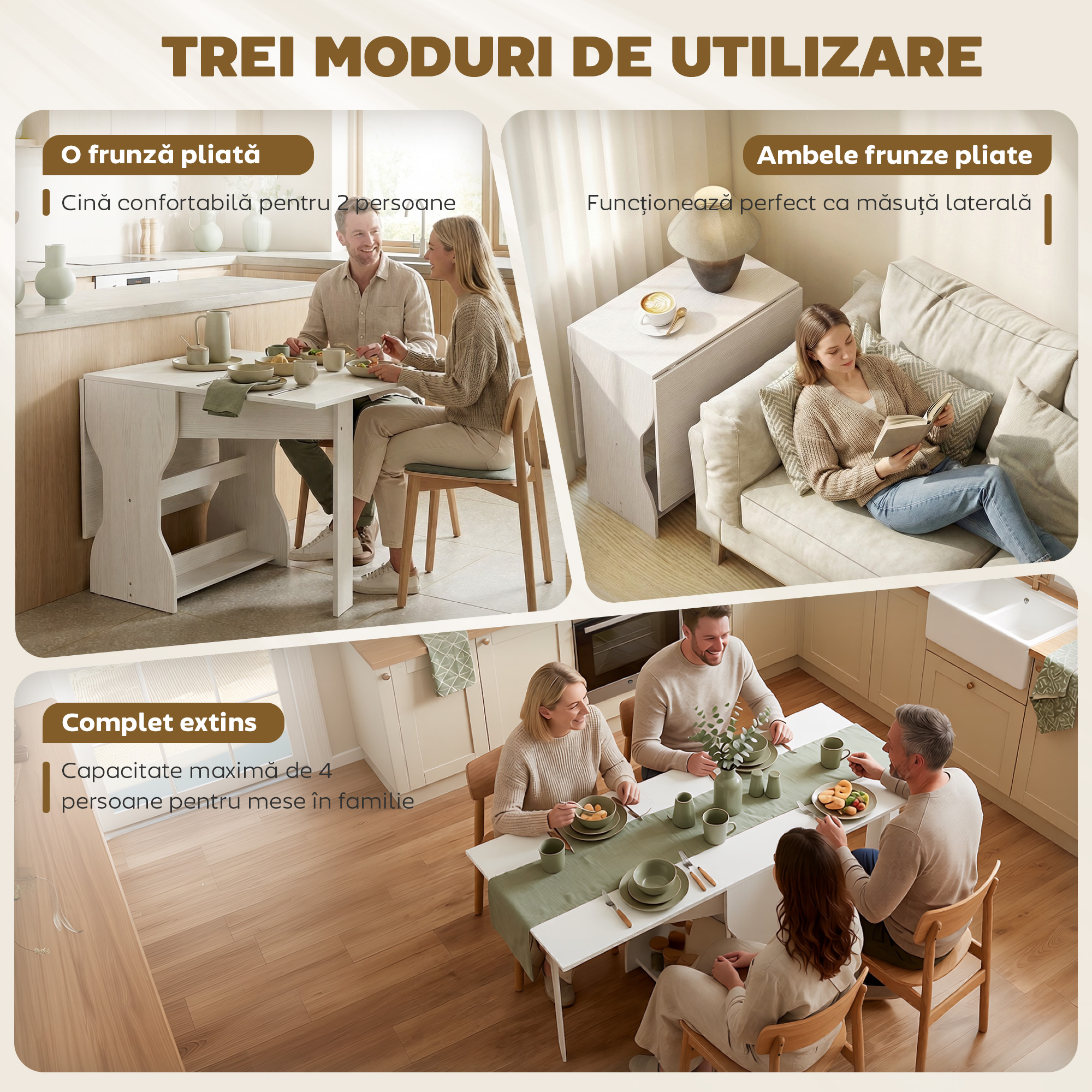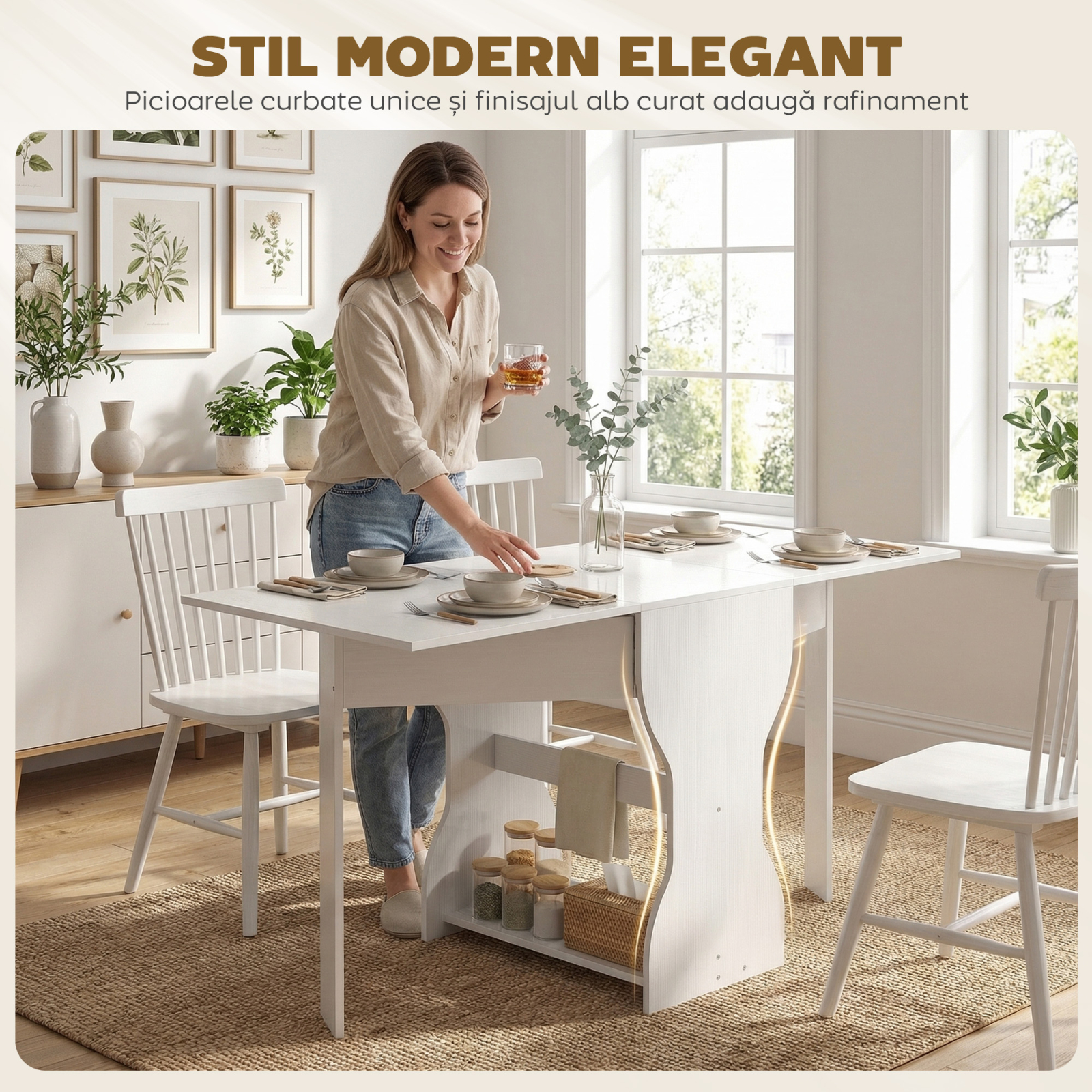 Ai probleme cu un apartament mic fara spatiu pentru o masa de dining? Masa rabatabila [BRAND NAME] se transforma dintr-o consola intr-o masa pentru patru persoane in doar 30 de minute. Eleganta si economisind spatiu, ofera o zona de luat masa cu spatiu de depozitare, perfecta pentru momente de neuitat si pentru optimizarea spatiului tau cu versatilitate.
