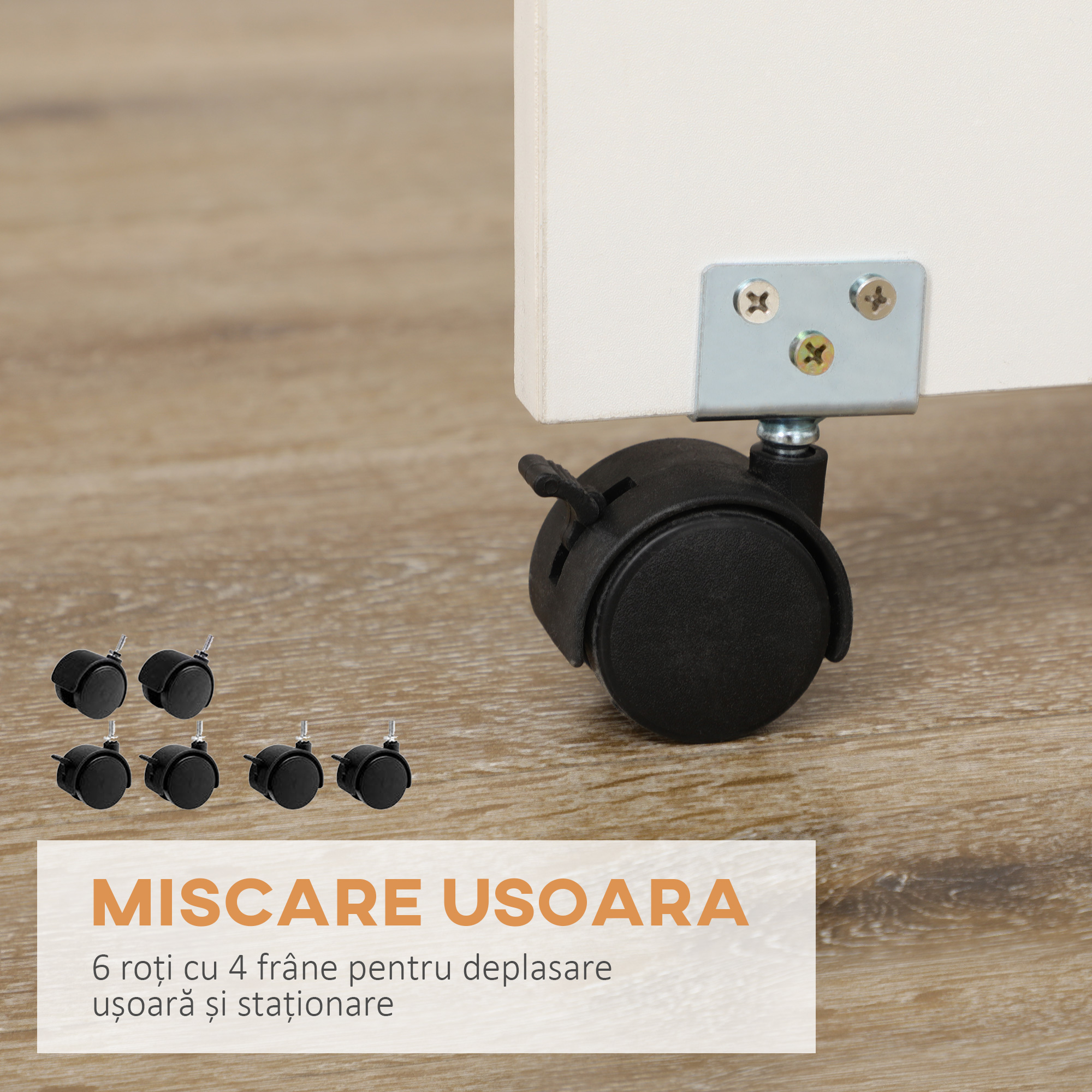 Optati pentru o solutie versatila cu masa de bucatarie [BRAND NAME], rabatabila si cu roti, ideala pentru spatii mici. Dotata cu doua sertare si un dulapior cu usi, este construita din PAL alb curat si se pliaza rapid atunci cand nu este folosita. Perfecta pentru bucatarii de apartament, zona de servire sau ca blat de lucru suplimentar. Mobila practica, moderna si eficienta pentru orice casa!