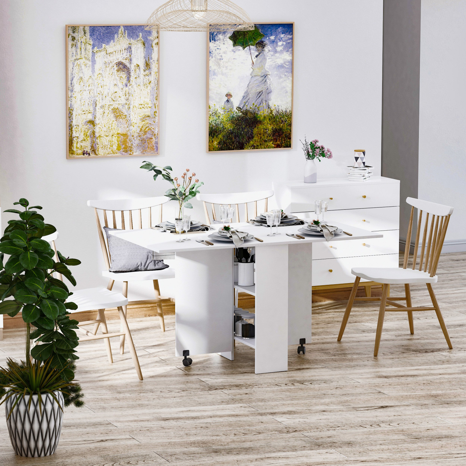 Ideala pentru spatii mici sau home office, masa pliabila [BRAND NAME] ofera un design practic cu etajera integrata si roti pentru mobilitate. Se pliaza rapid pentru a economisi spatiu si este fabricata din lemn MDF rezistent cu finisaj alb modern. Perfecta pentru lucru, studiu sau activitati creative, aceasta masa combina functionalitatea cu eleganta minimalista.