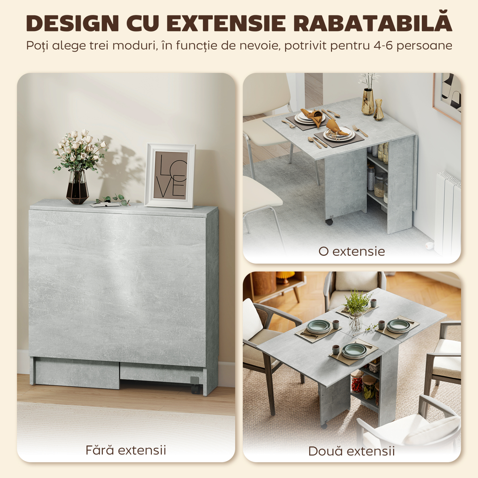 Perfecta pentru dining sau activitati ocazionale, aceasta masa pliabila [BRAND NAME] ofera flexibilitate si durabilitate. Blatul din lemn gri mat este robust si usor de curatat, iar cadrul pliabil cu roti permite mutarea rapida. Capacitatea de a gazdui intre 4 si 6 persoane o face ideala pentru intalniri familiare sau mesele festive. Designul igienic si compact combina practicitatea cu o estetica contemporana.