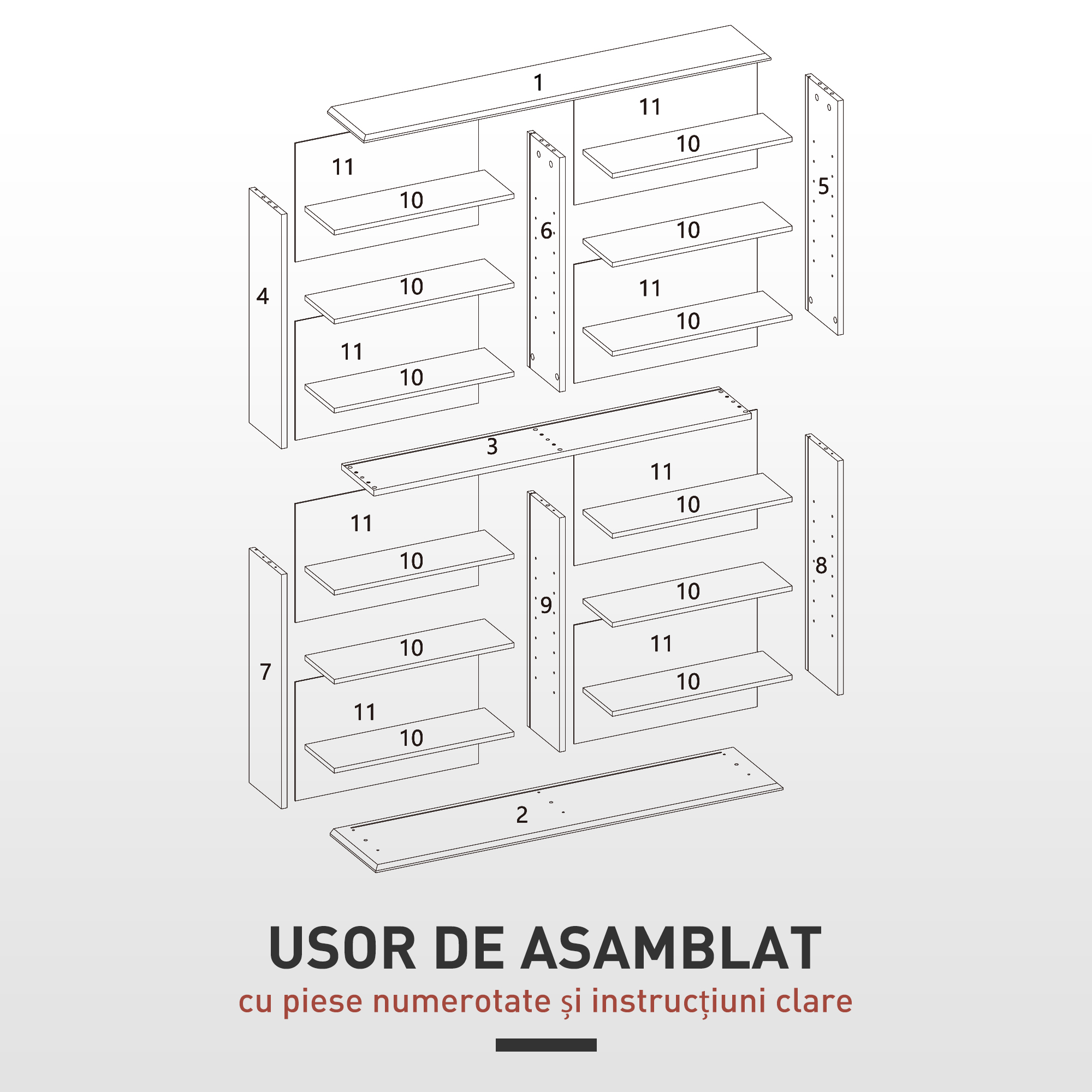 - DIMENSIUNI: Dimensiuni totale: 106.5 x 24 x 126.3 cm. Dimensiunile fiecarui raft: 47 x 15 x 14 cm. Capacitate de greutate: 30 kg. Usor de asamblat.